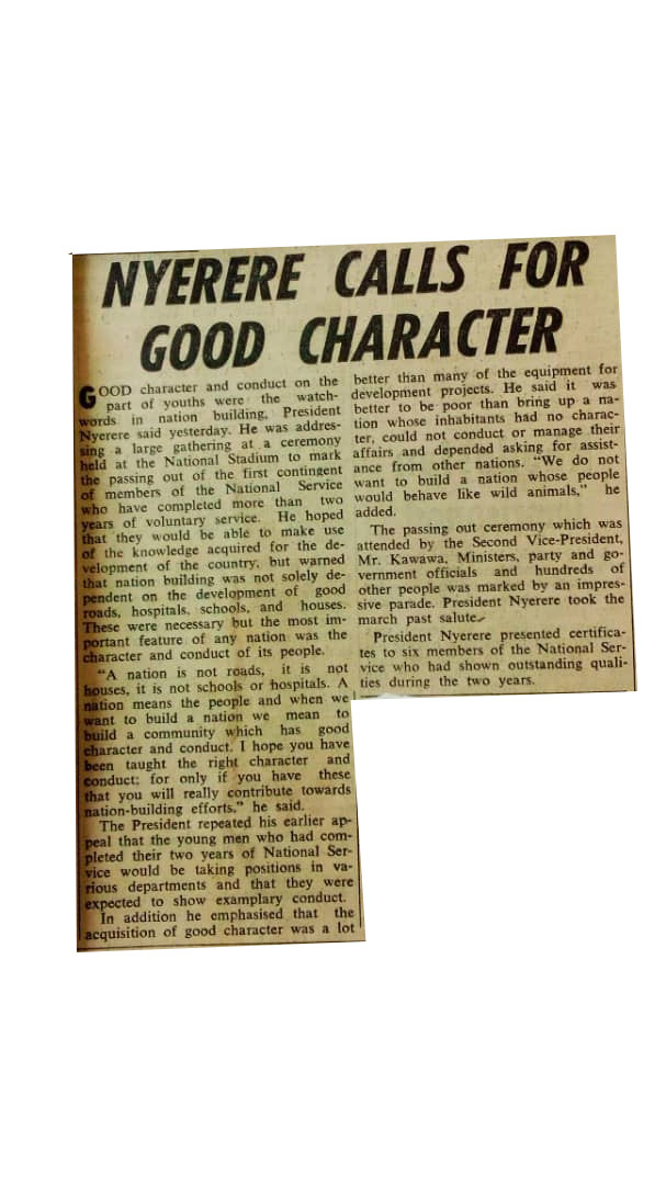 Nyerere calls for good character (1966,November 26) The Nationalist.pp.1