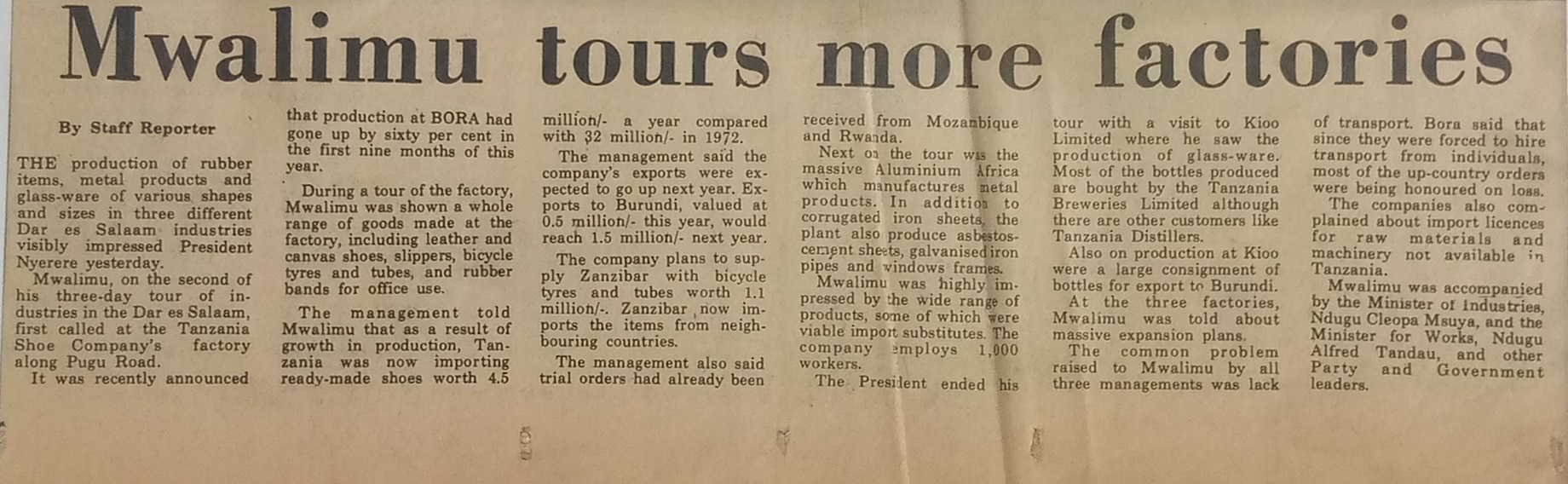 Mwalimu tours more factories (1977,October 29) Daily News,pp1