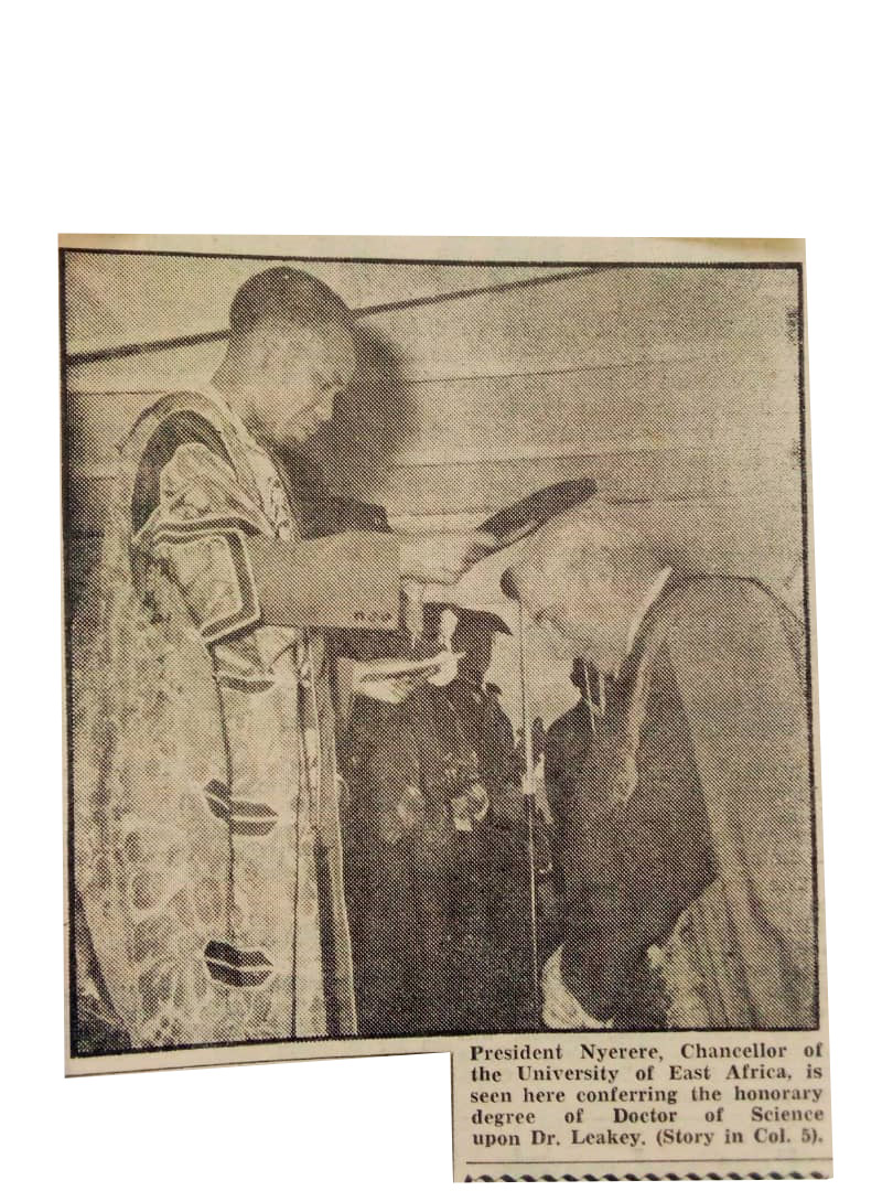 President Nyerere, Chancellor of the University of East Africa conferring the honorary degree of Doctor of Science upon Dr. Leakey