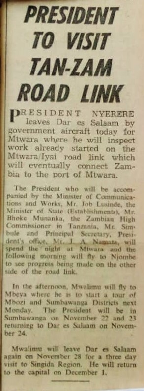 President to visit TAN-ZAM road link