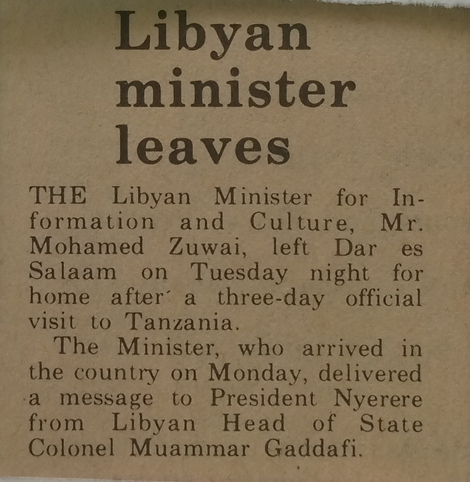 The Libyan Minister for information and culture , Mr.Mohamed Zuwai ,left Dar es Salaam on Tuesday night for home after a three-day official visit to Tanzania.