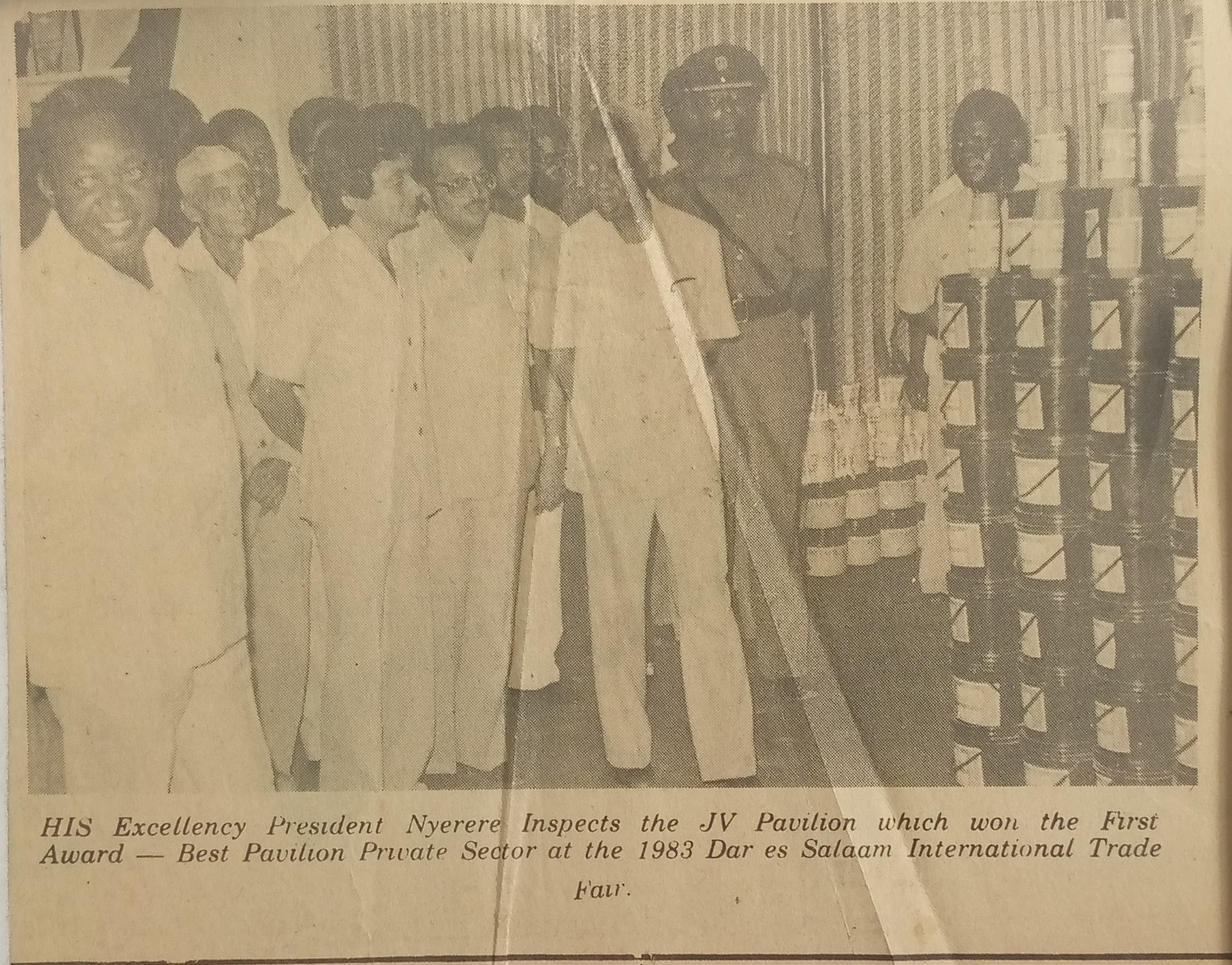 His Excellency President Nyerere Inspects the JV Pavilion which won the first Award-Best Pavilion Private Sector at the 1983 Dar es Salaam International Trade Fair.
