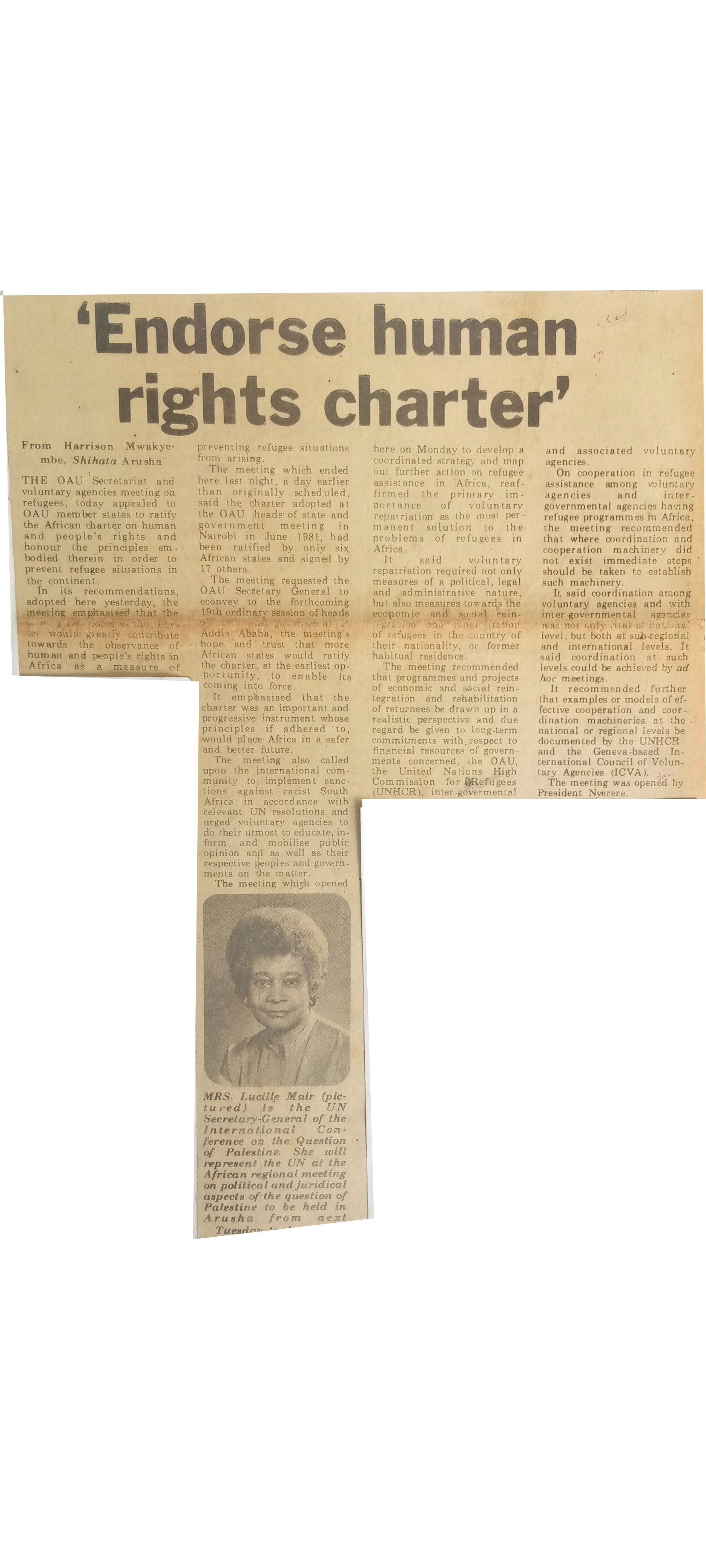 Endorse human rights charter (1983,March 26) Daily News.pp.1