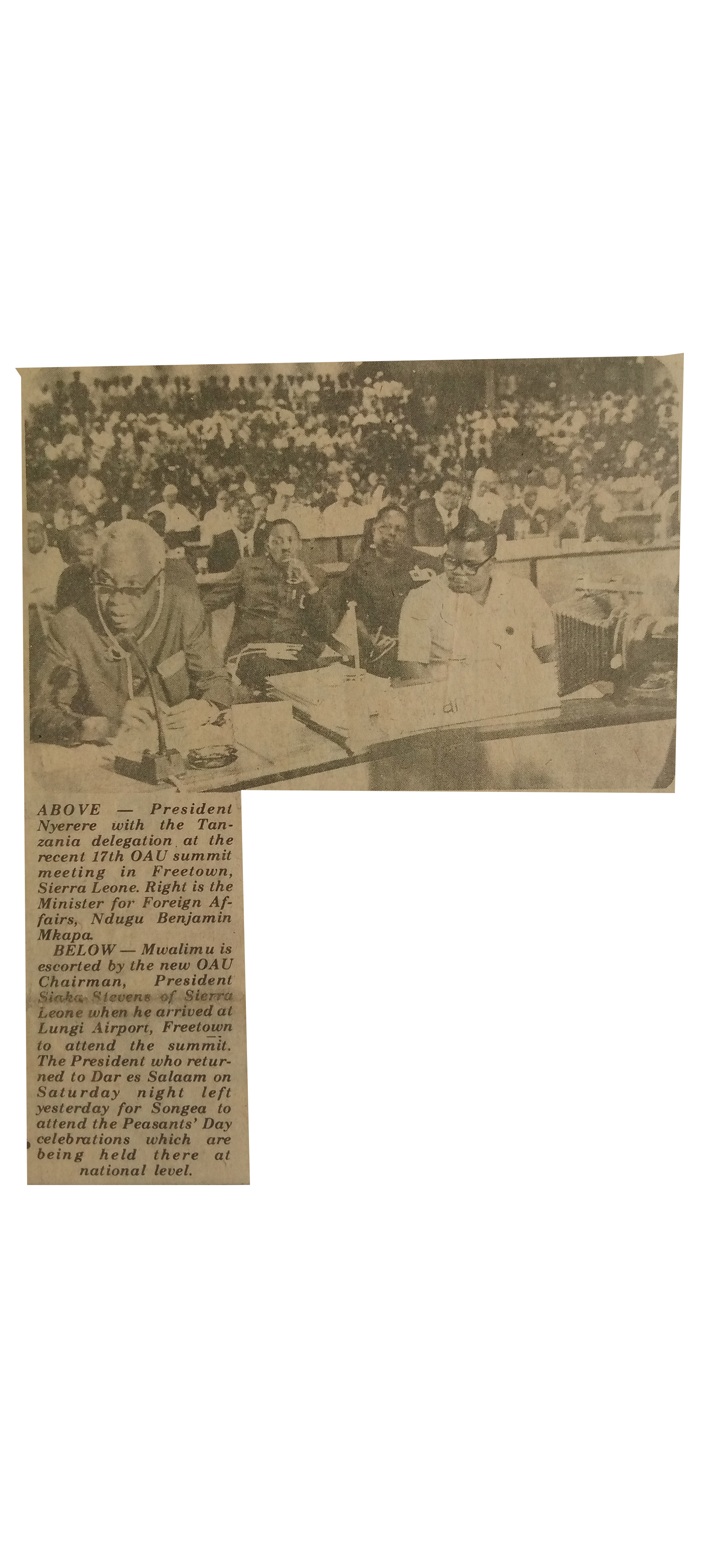 Nyerere J.K (1980 July 7). President Nyerere with the Tanzania delegation at the recent 17th OAU, pp. 1