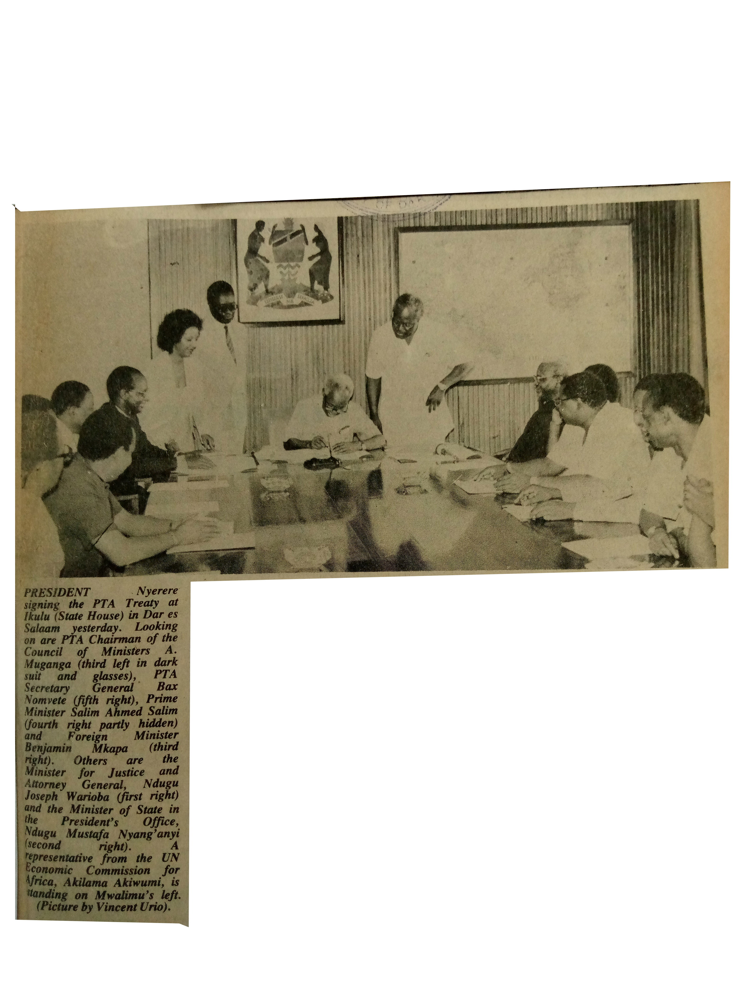 President Nyerere signing the PTA treaty at Ikulu(State House) in Dar es Salaam