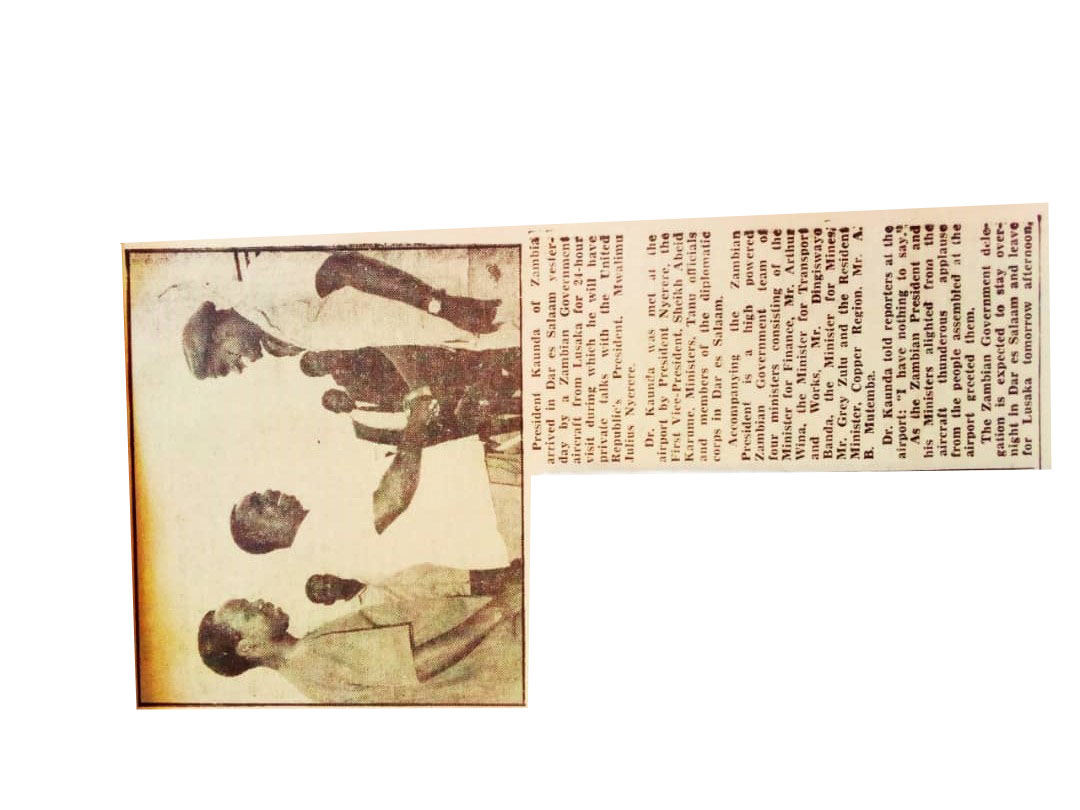 President Kaunda of Zambia arrived in Dar es Salaam (1965,November 6) The Nationalist.pp.1