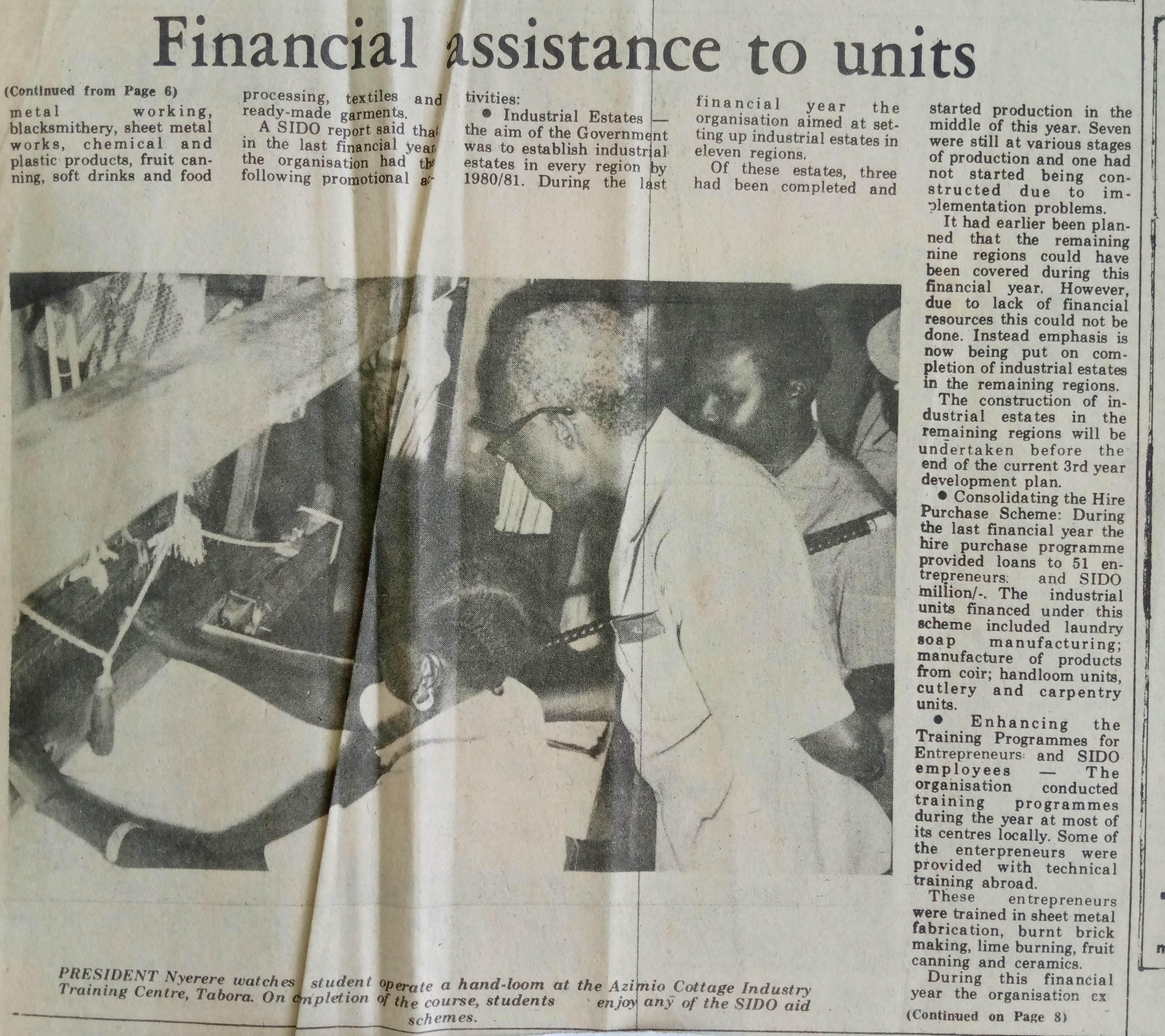 Financial assistance to units
