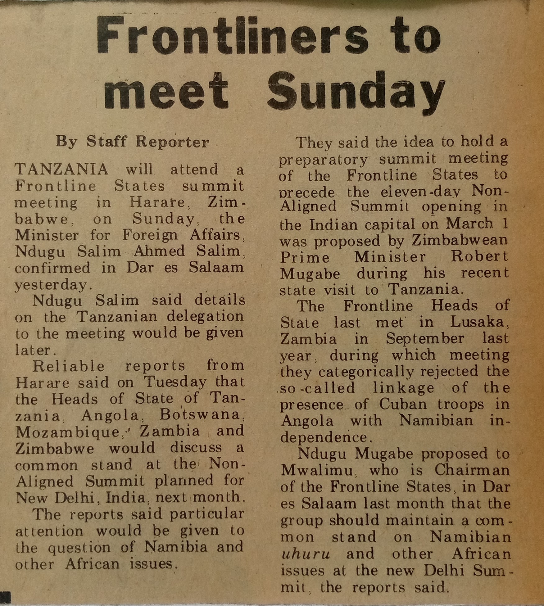 Frontliners to meet Sunday (1983,February 17) Daily News.pp.1