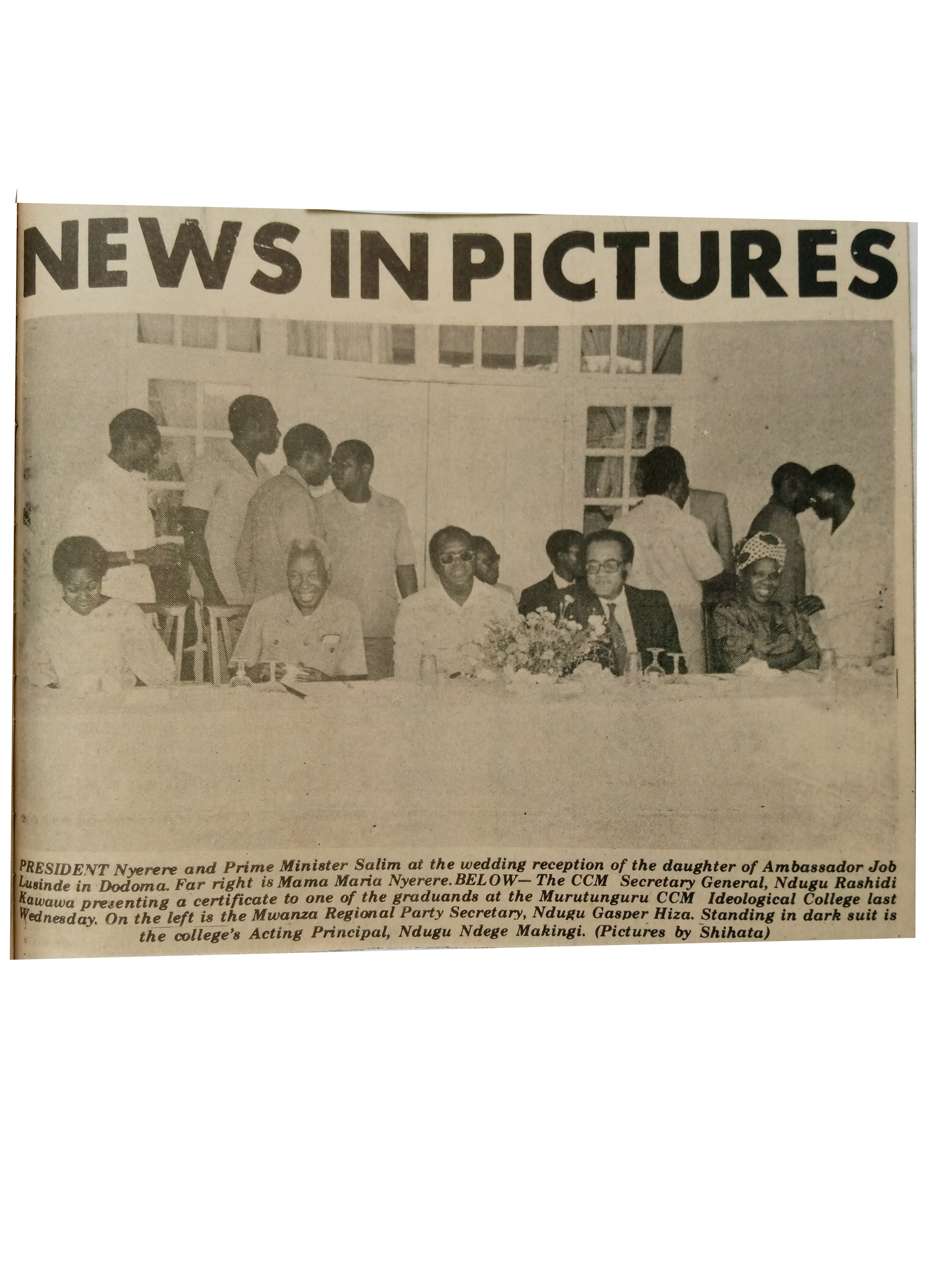 President Nyerere and Prime Minister Salim at the wedding (1984,December 25). Daily News,pp.5
