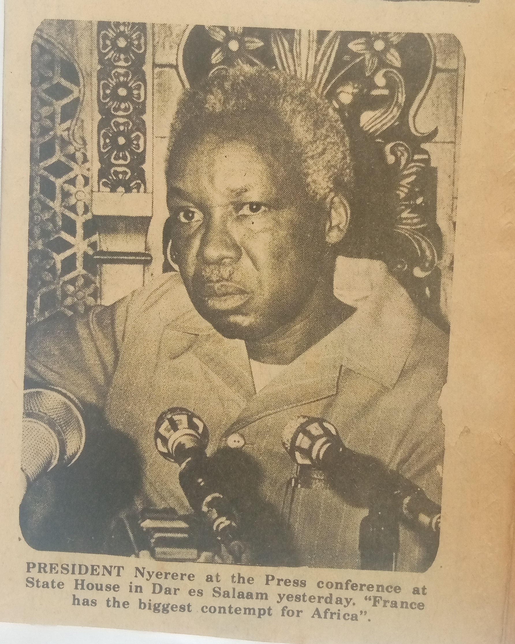 | dc.description.abstract | President Nyerere at the press conference at state in Dar es Salaam yesterday."France has the biggest contempt for Africa" | en_US |