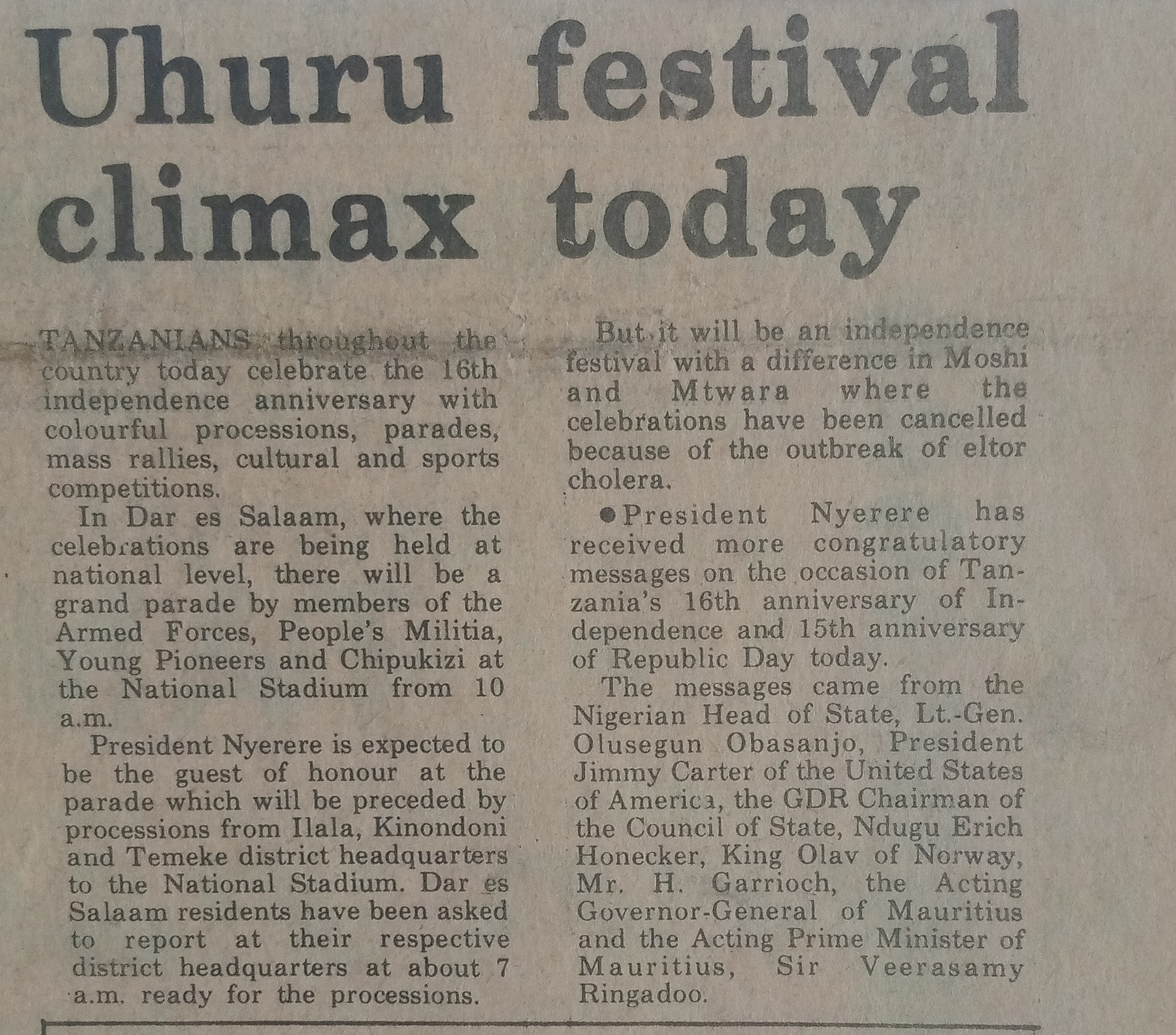 Uhuru festival climax today (1977,December 9) Daily News.pp.1