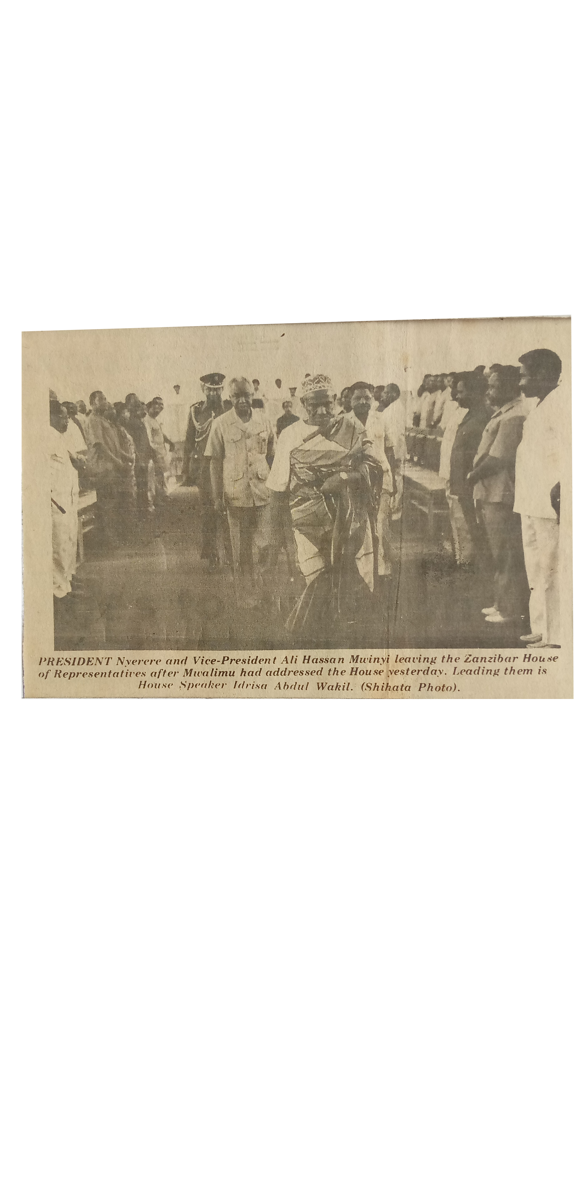 President Nyerere and Vice-President Ali Hassan Mwinyi Leaving the Zanzibar House of Representatives (1985,July 30) Daily News,pp1