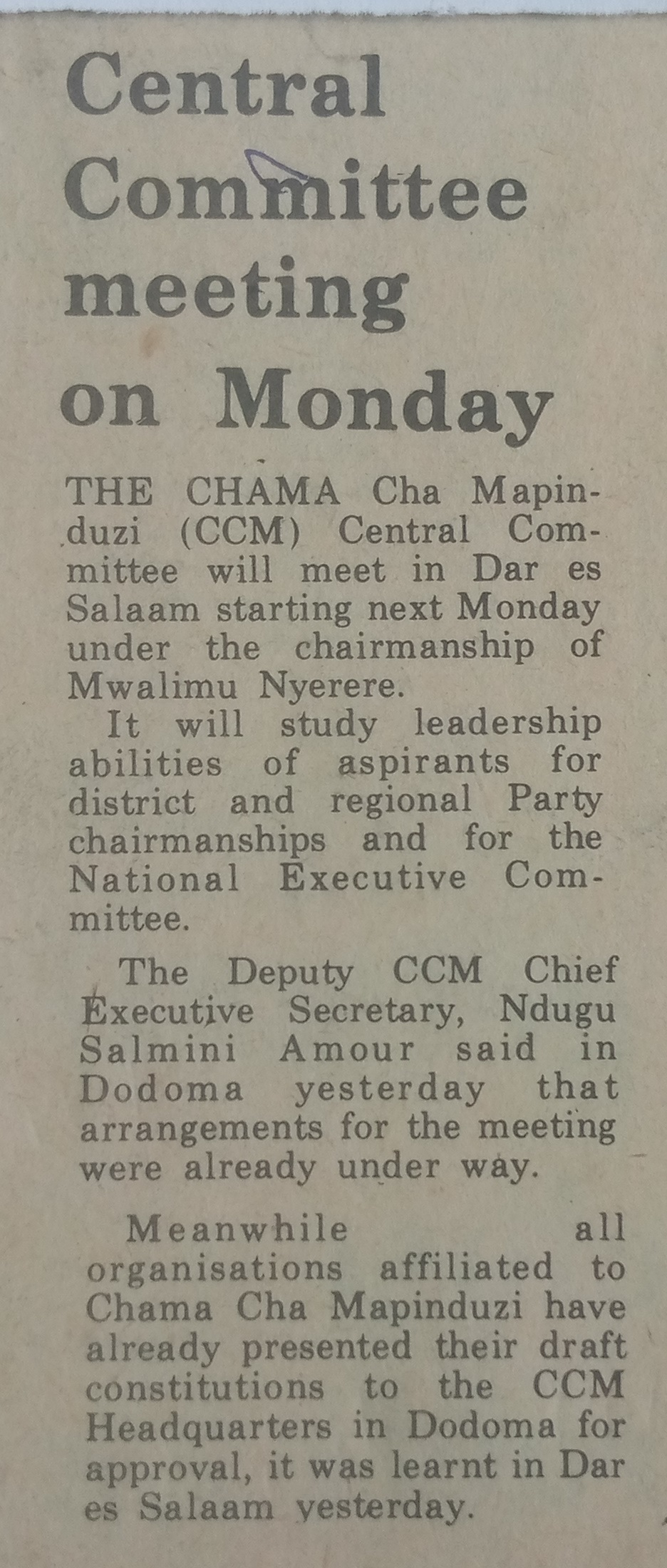 Central Committee meeting on Monday (1977, August 23). Daily News, pp1