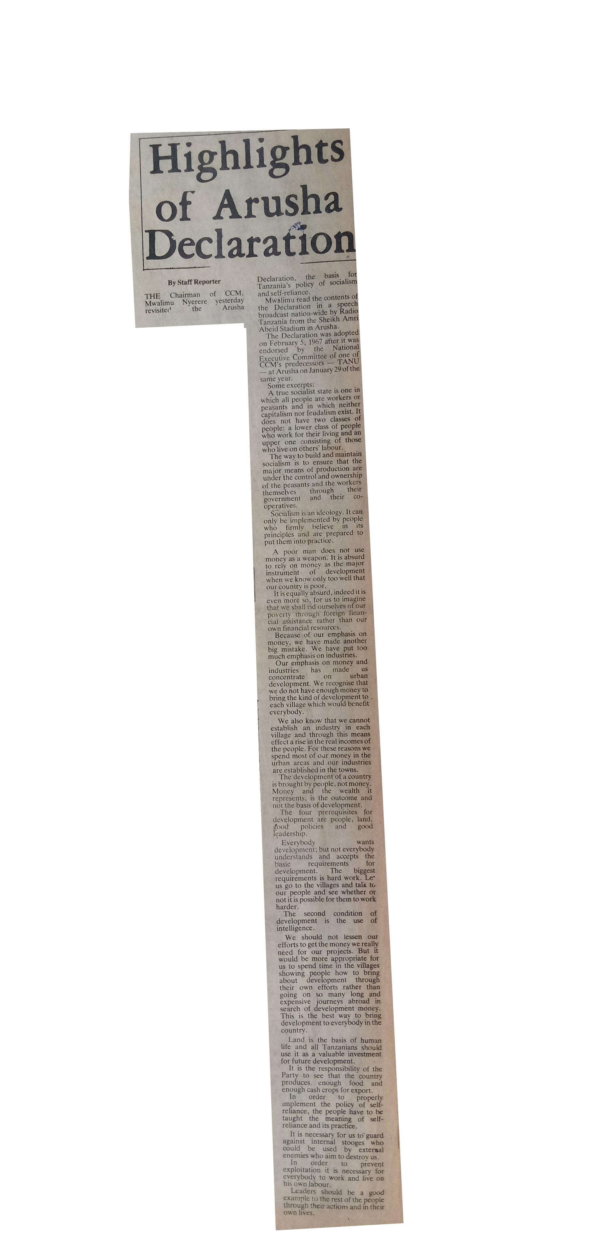Highlights of Arusha Deceleration (1982,February 20) Daily News.pp.1
