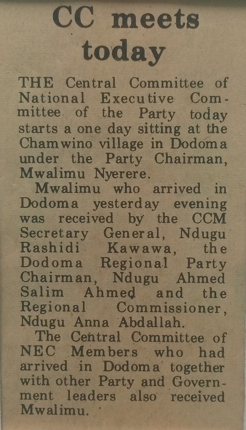 The Central Committee of National Executive Committee of the Party Committee starts a one day sitting at the Chamwino village in Dodoma.