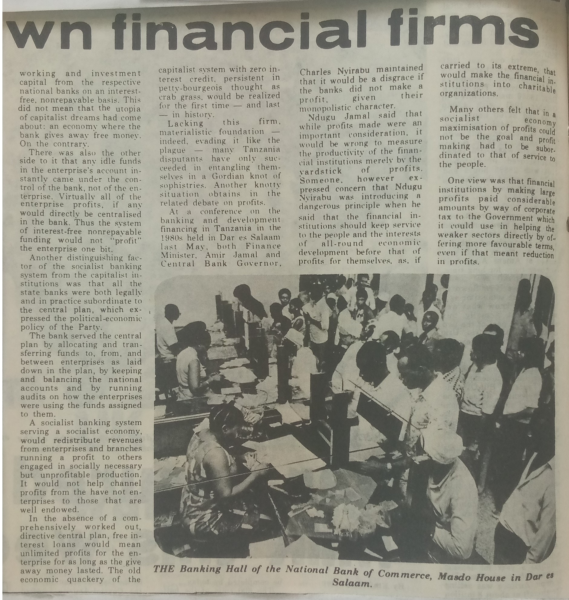 The banking hall of the National bank of Commerce, Masido House in Dar es Salaam.