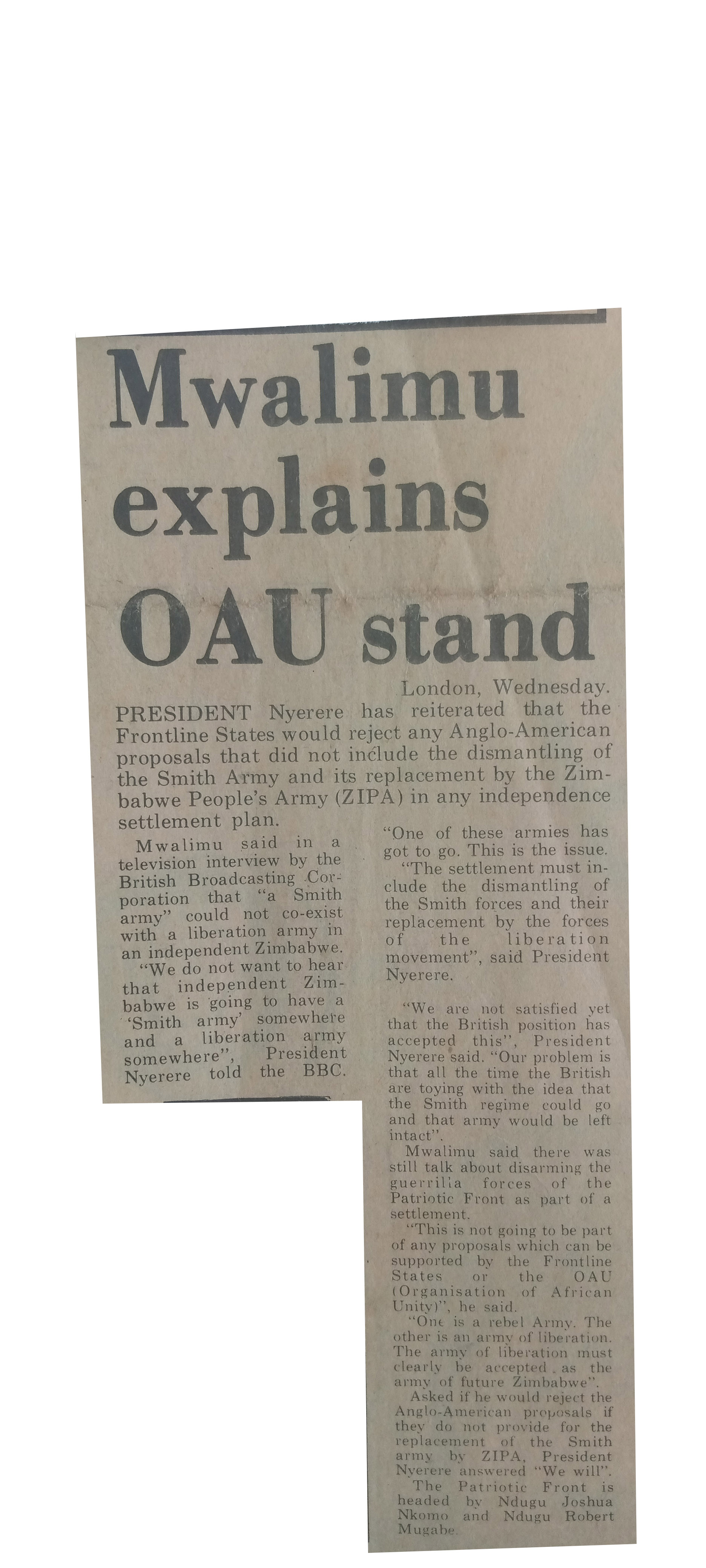 Mwalimu explains OAU Stand (1977,September 1) Daily News.pp.1