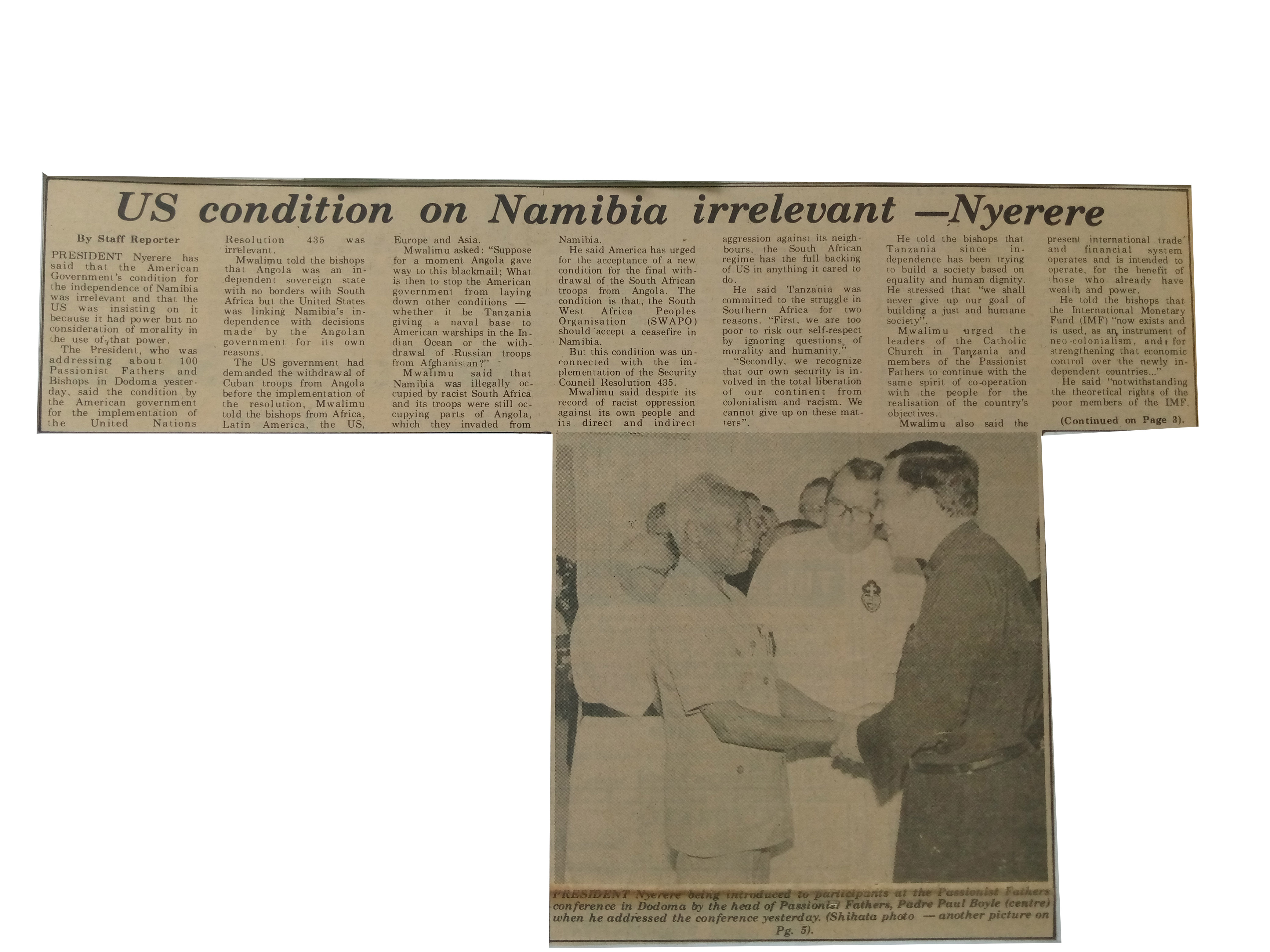 US condition on Namibia irrelevant-Nyerere (1984,September 18) Daily News.pp.1