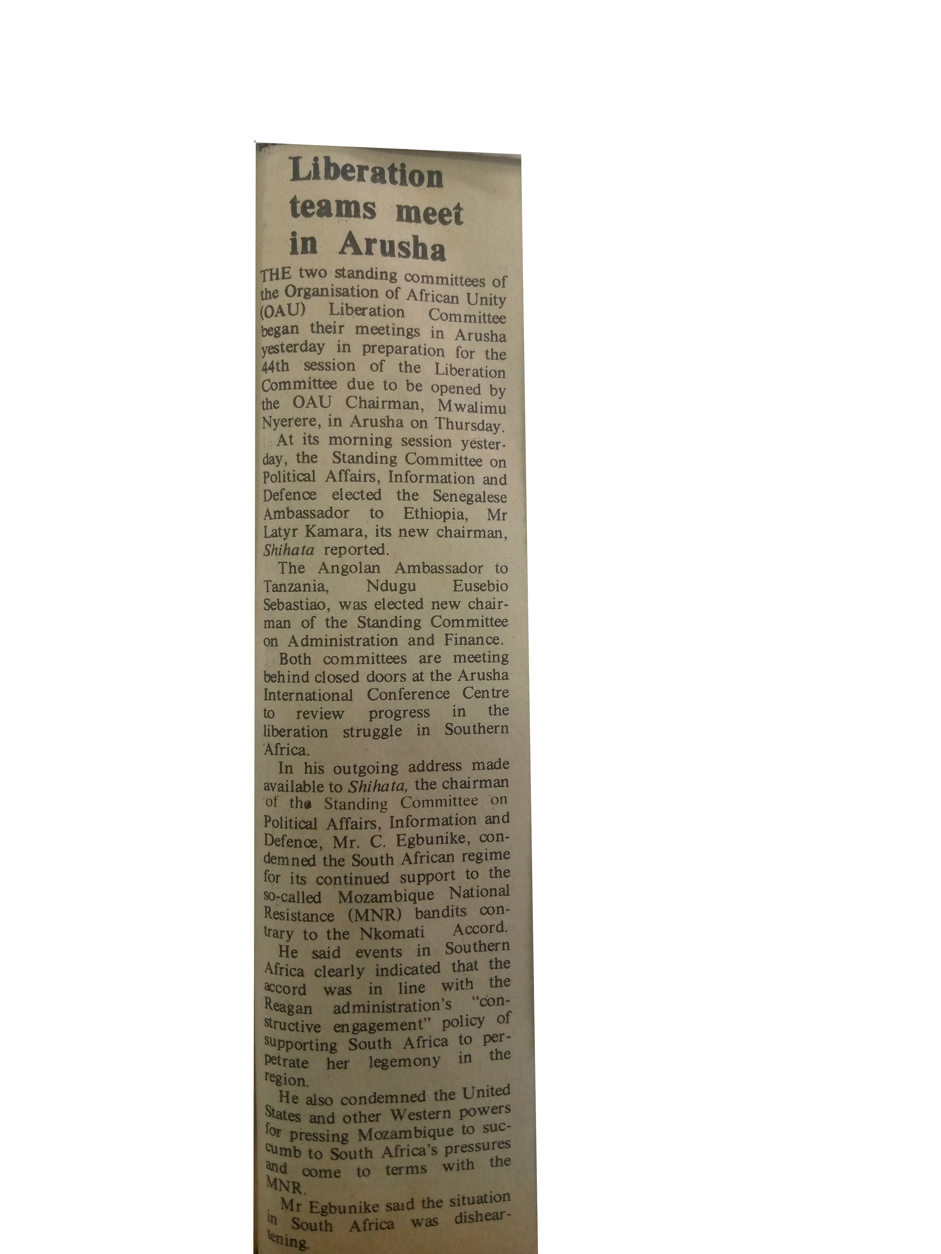 Liberation teams meet in Arusha(1985,July 2) Daily News,pp.3