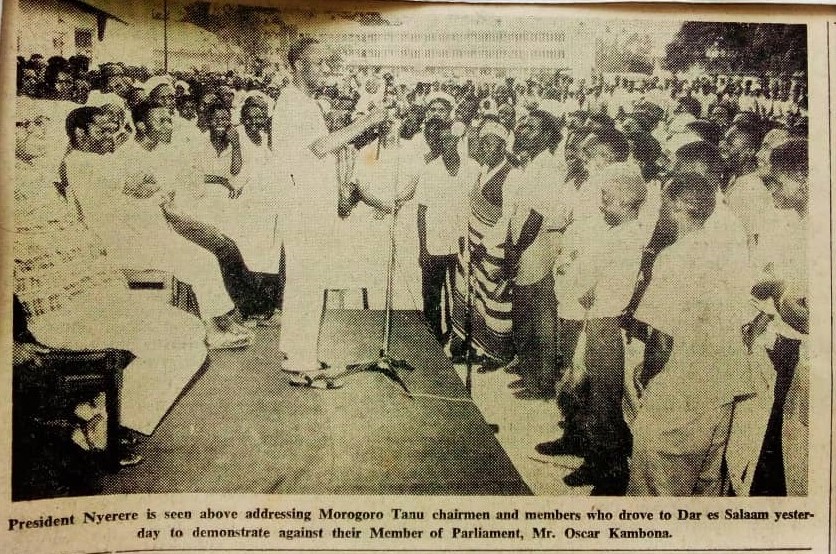 President Nyerere addressing Tanu chairmen and members who drove to Dar es salaam to demonstrate against their Member of Parliament