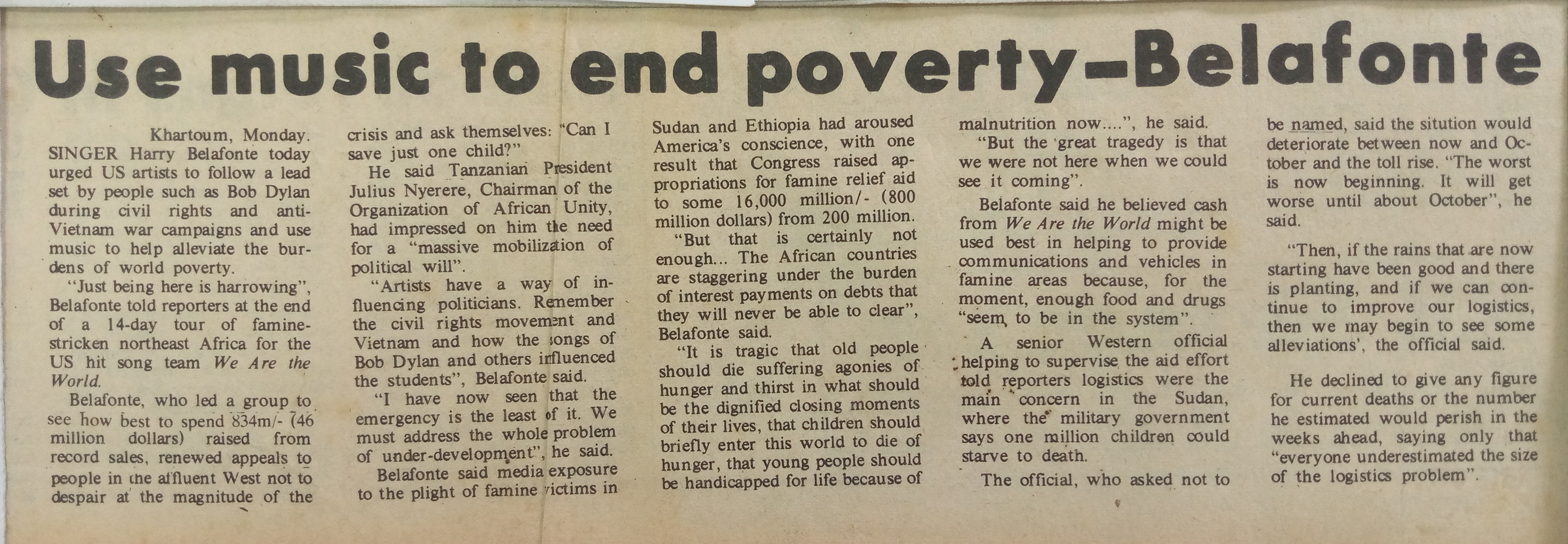 Use music to end poverty (1985,June 28) Daily News,pp.1