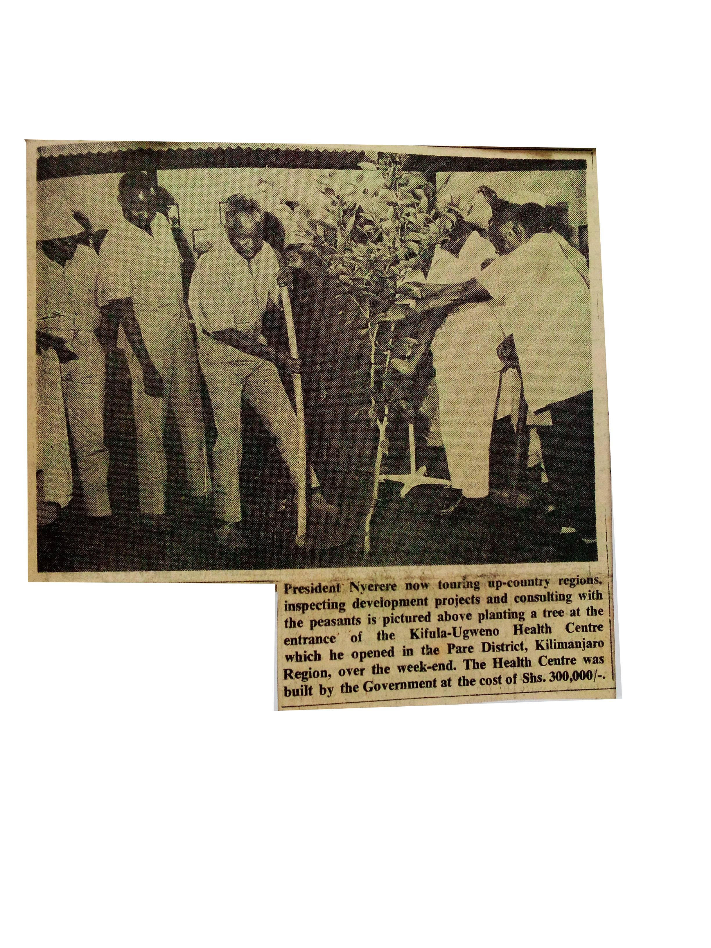| dc.description.abstract | President Nyerere touring up-country regions, inspecting development projects and consulting with the peasants planting a tree at the entrance of the Kifula-Ugweno Health Centre. | en_US |