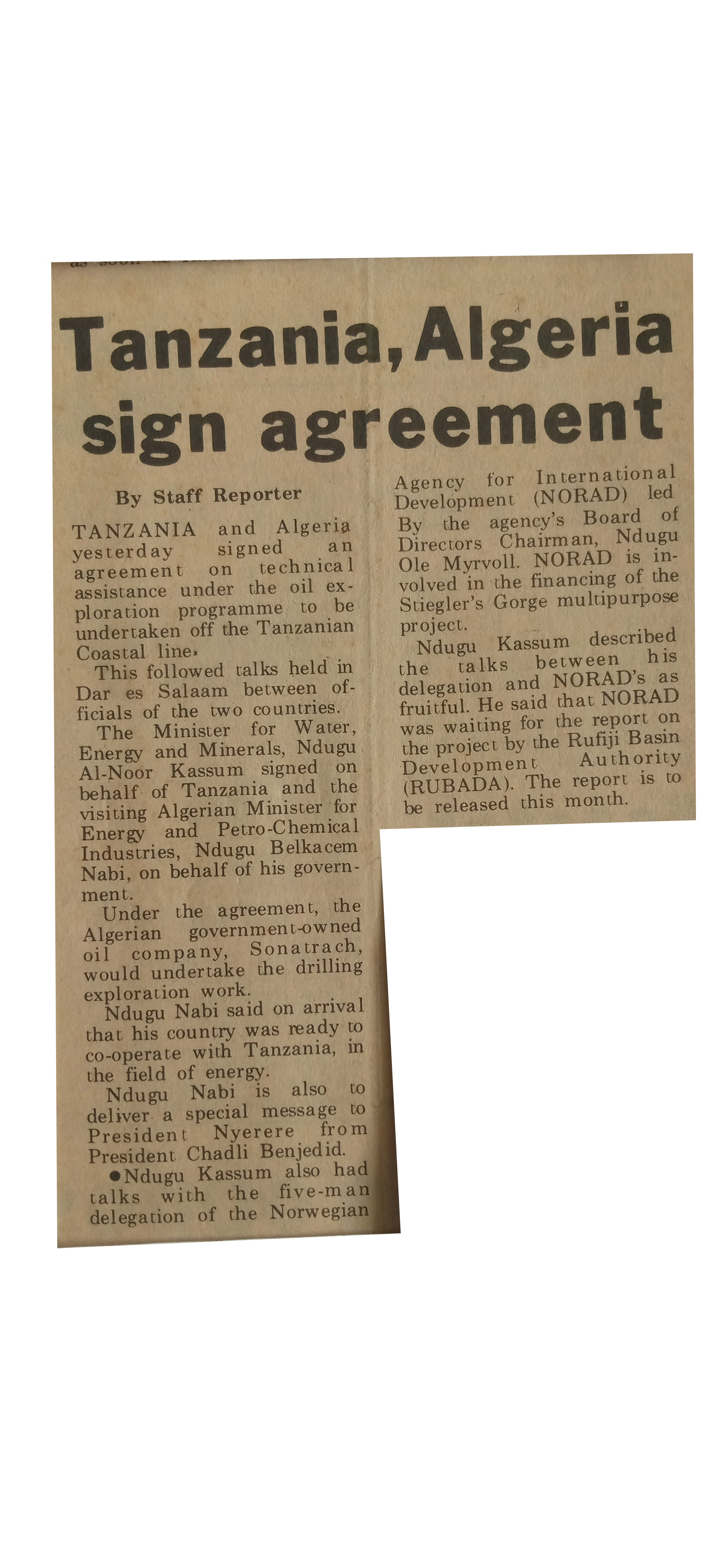 Tanzania,Algeria sign agreement (1980,September 5) Daily News.pp.1