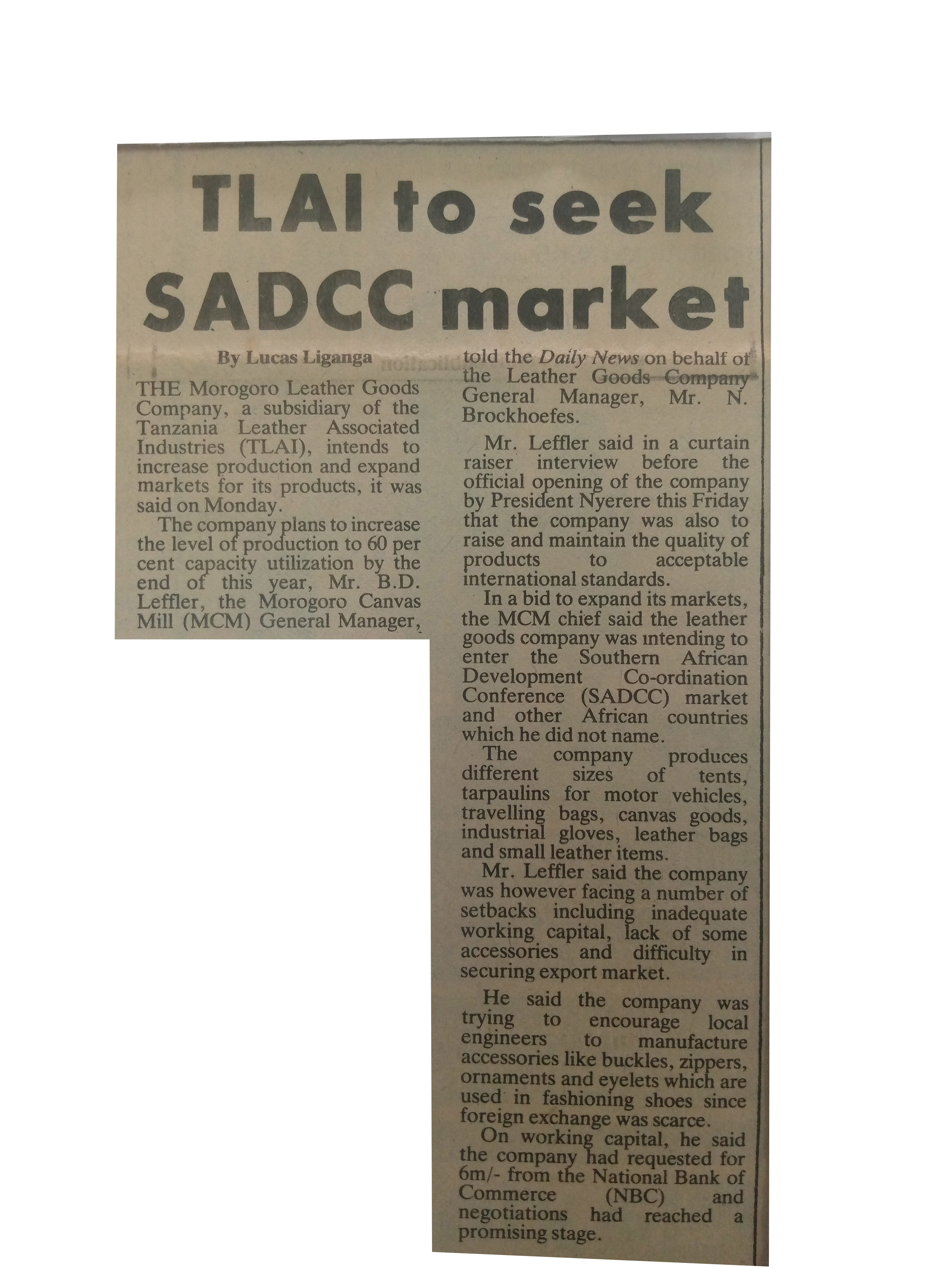 TLAI to seek SADCC market(1985,May 8) Daily News,pp.3