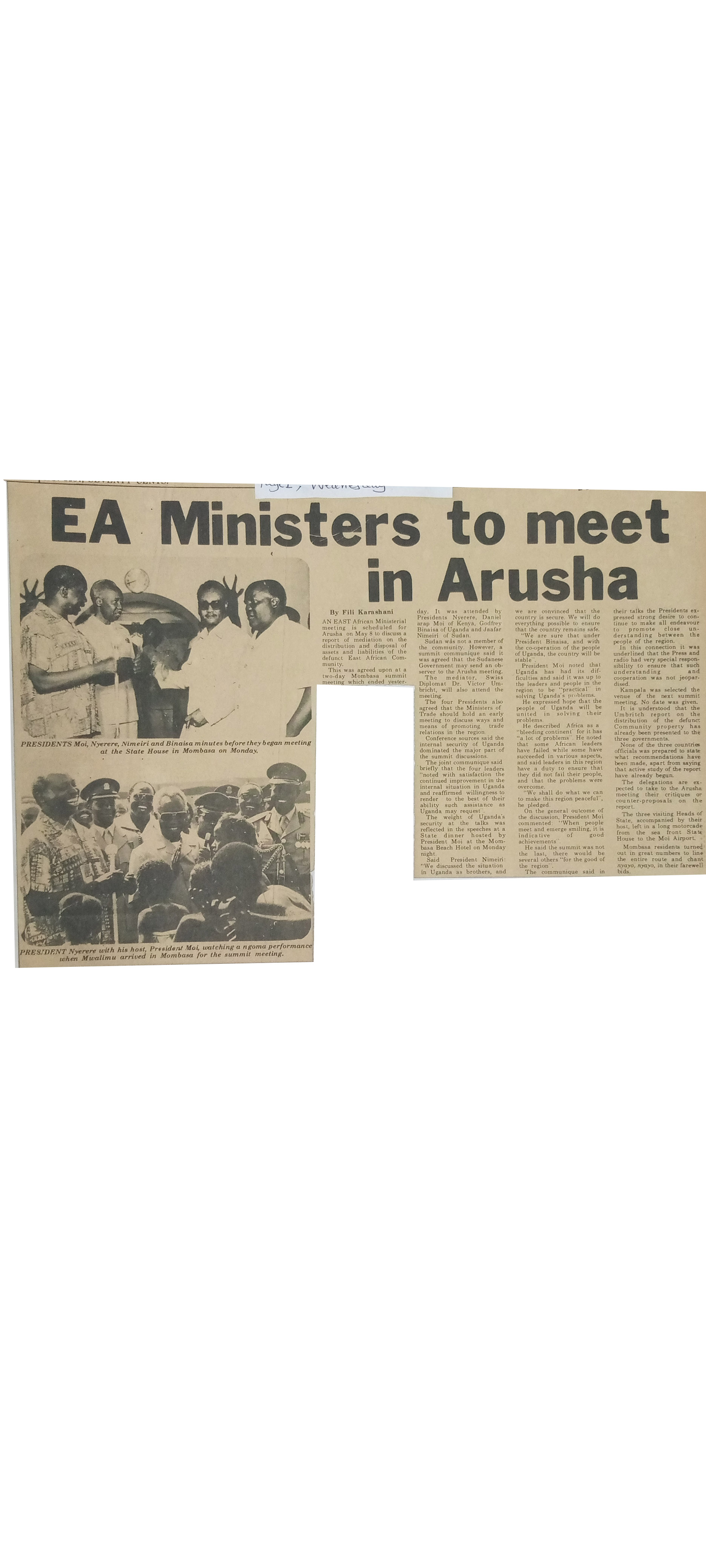 EA Ministers to meet in Arusha (1980,April 16) Daily News.pp.1