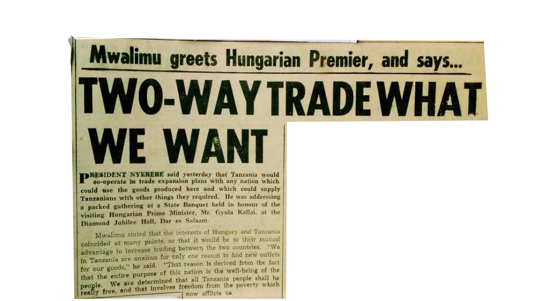 Mwalimu greets Hungarian premier, and says: two-way trade what we want (1966, February 12).The Nationalist, pp1.