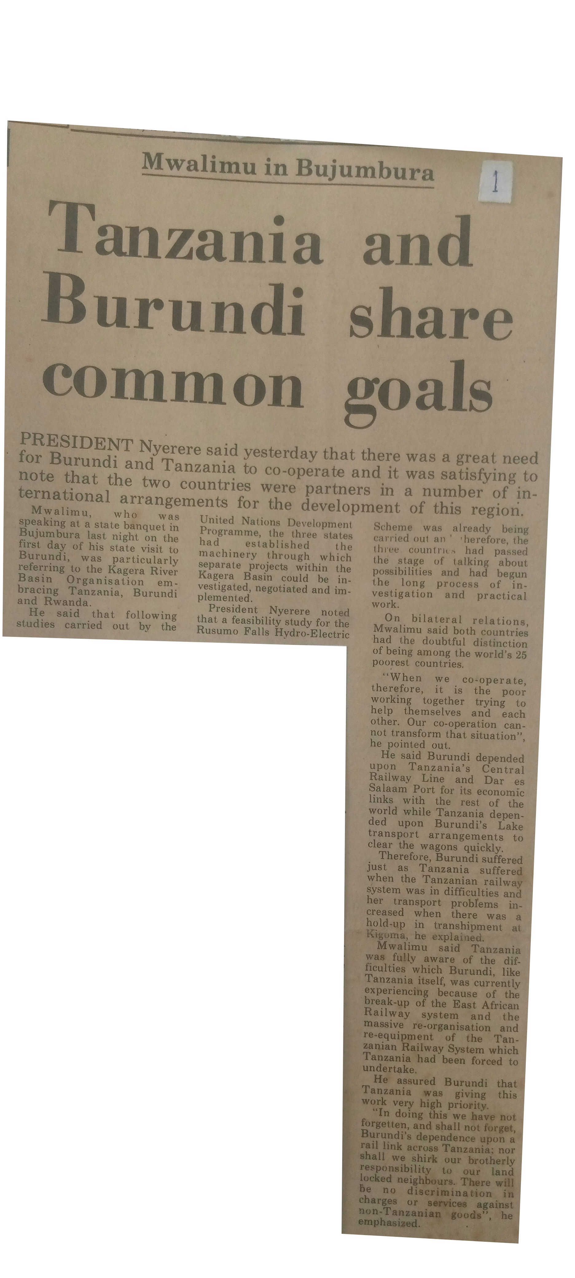 Tanzania and Burundi share common goals (1978,May 9) Daily News.pp.1