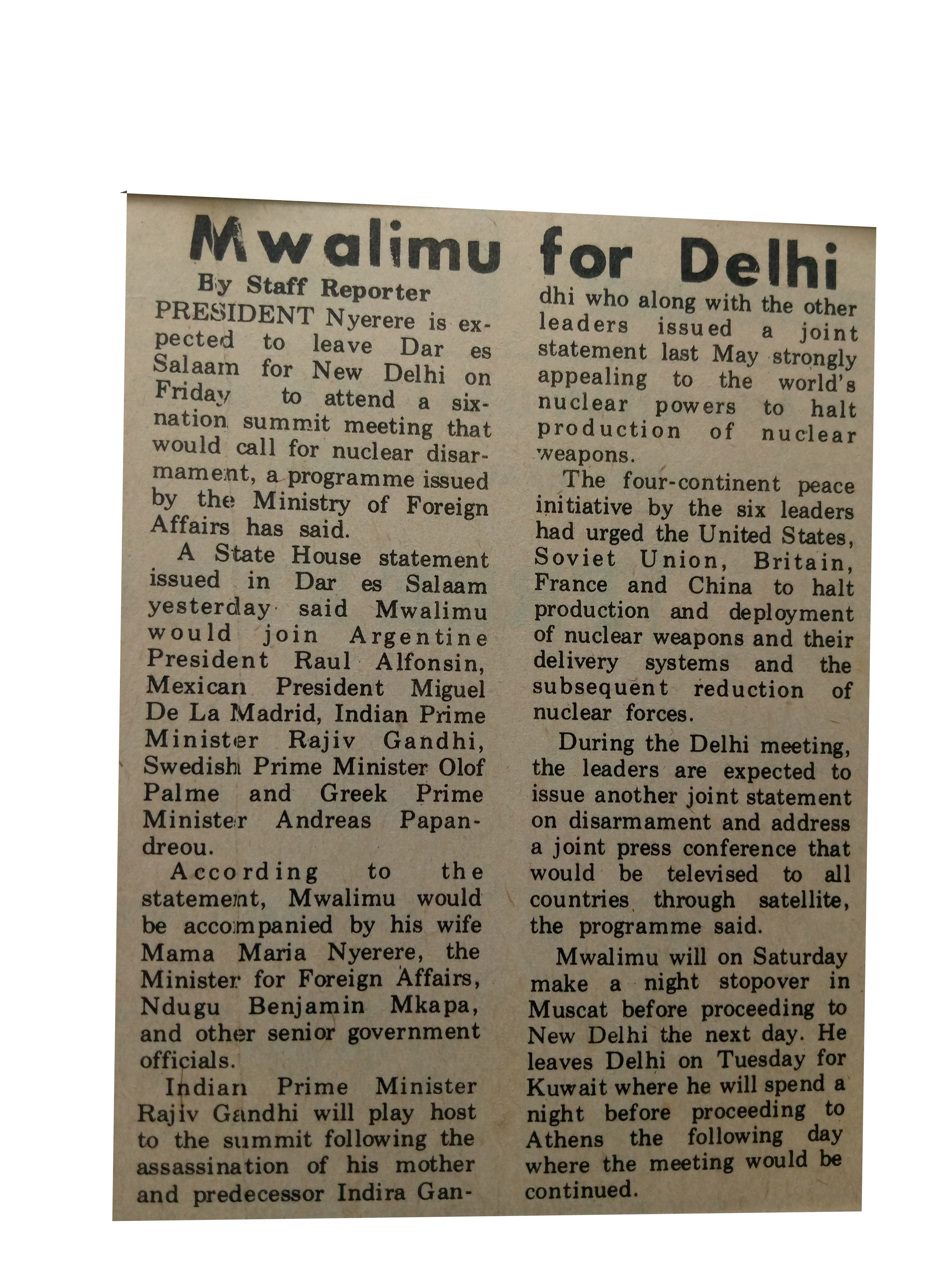 Mwalimu for Delhi(1985,January 23)..Daily News,pp.1