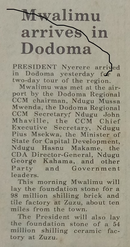 Mwalimu arrives in Dodoma (1978, November 16). Daily News, pp1.