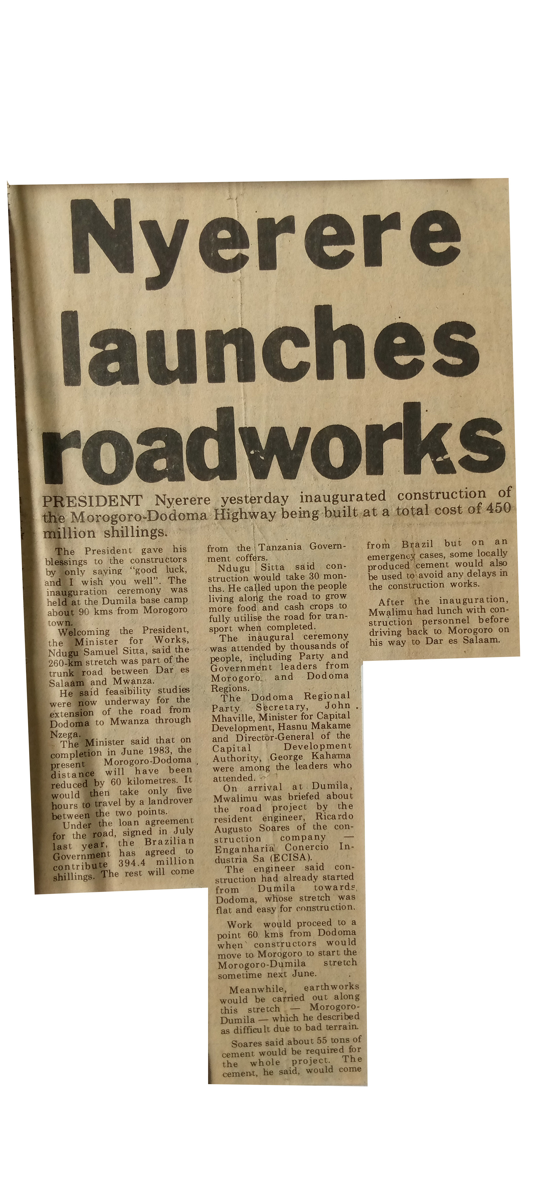 Nyerere launches roadworks (1980,August 28) Daily News.pp.1