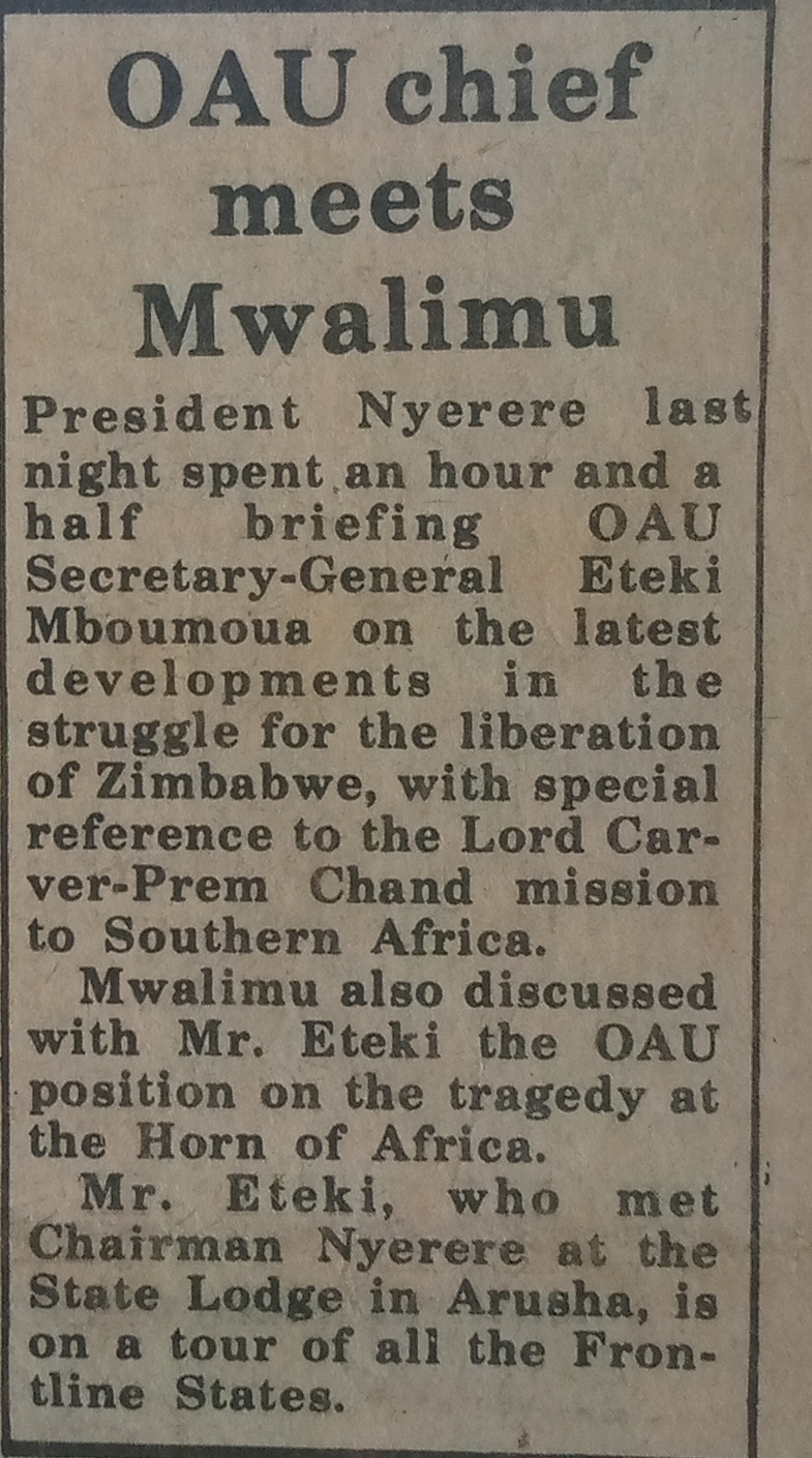 Nyerere, J.K. (1977) OAU chief meets Mwalimu, Daily News, p1.