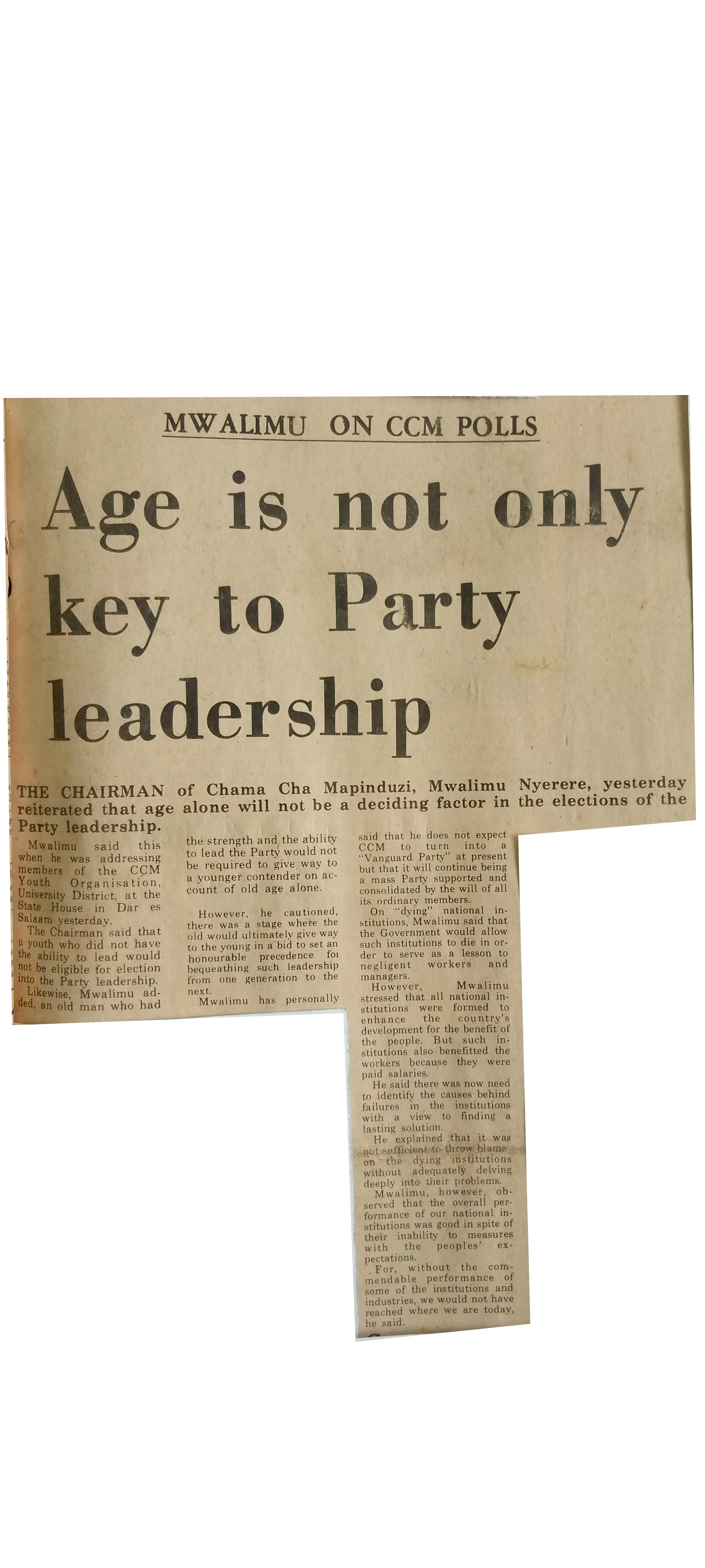 Age is not only key to Party leadership (1977,July 23) Daily News.pp.1