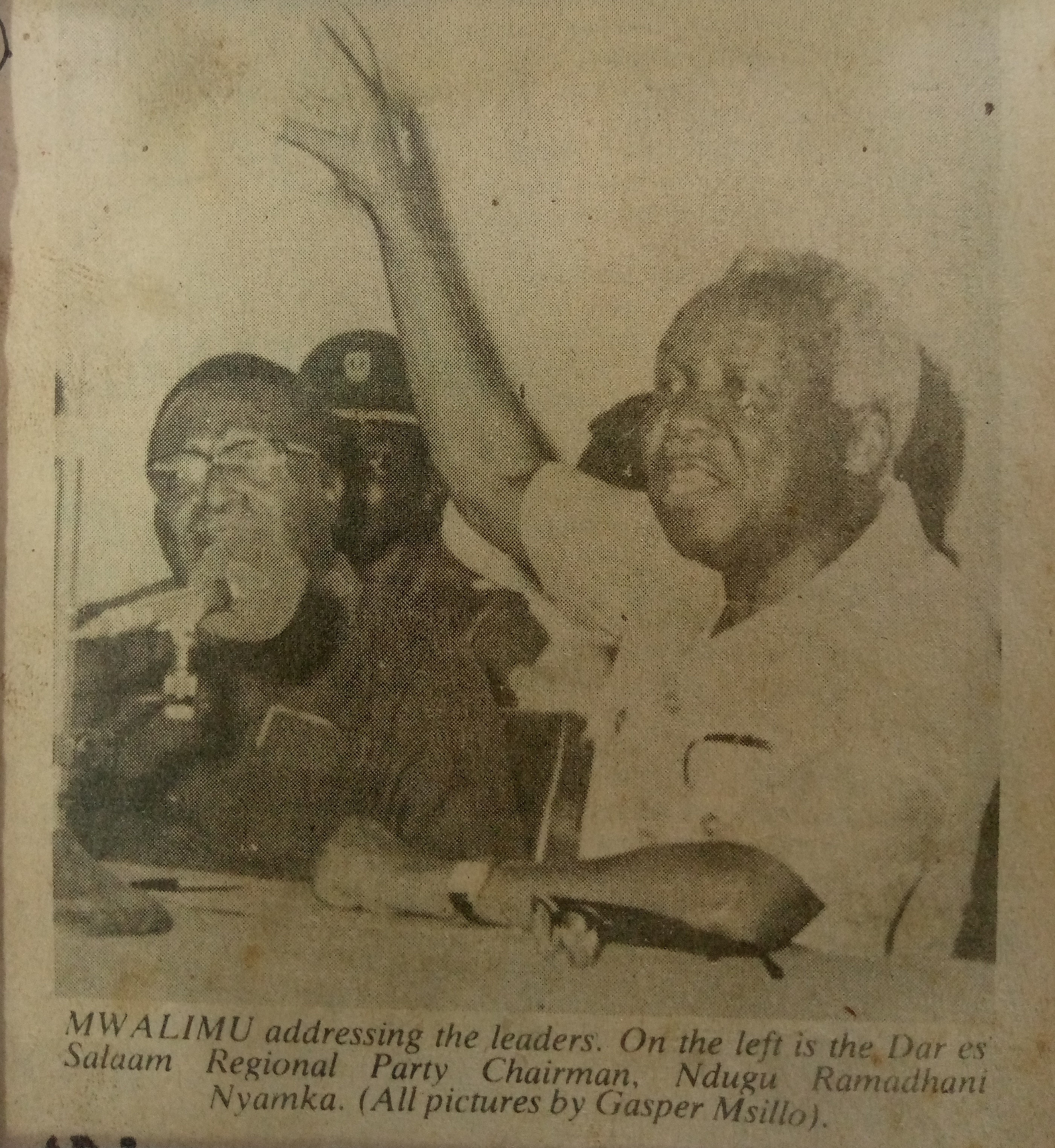 Mwalimu addressing the leaders (1985, May 19). Daily News, pp1.