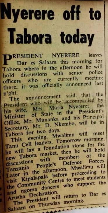 Nyerere off to Tabora today (1967), The Nationalist.pp.1