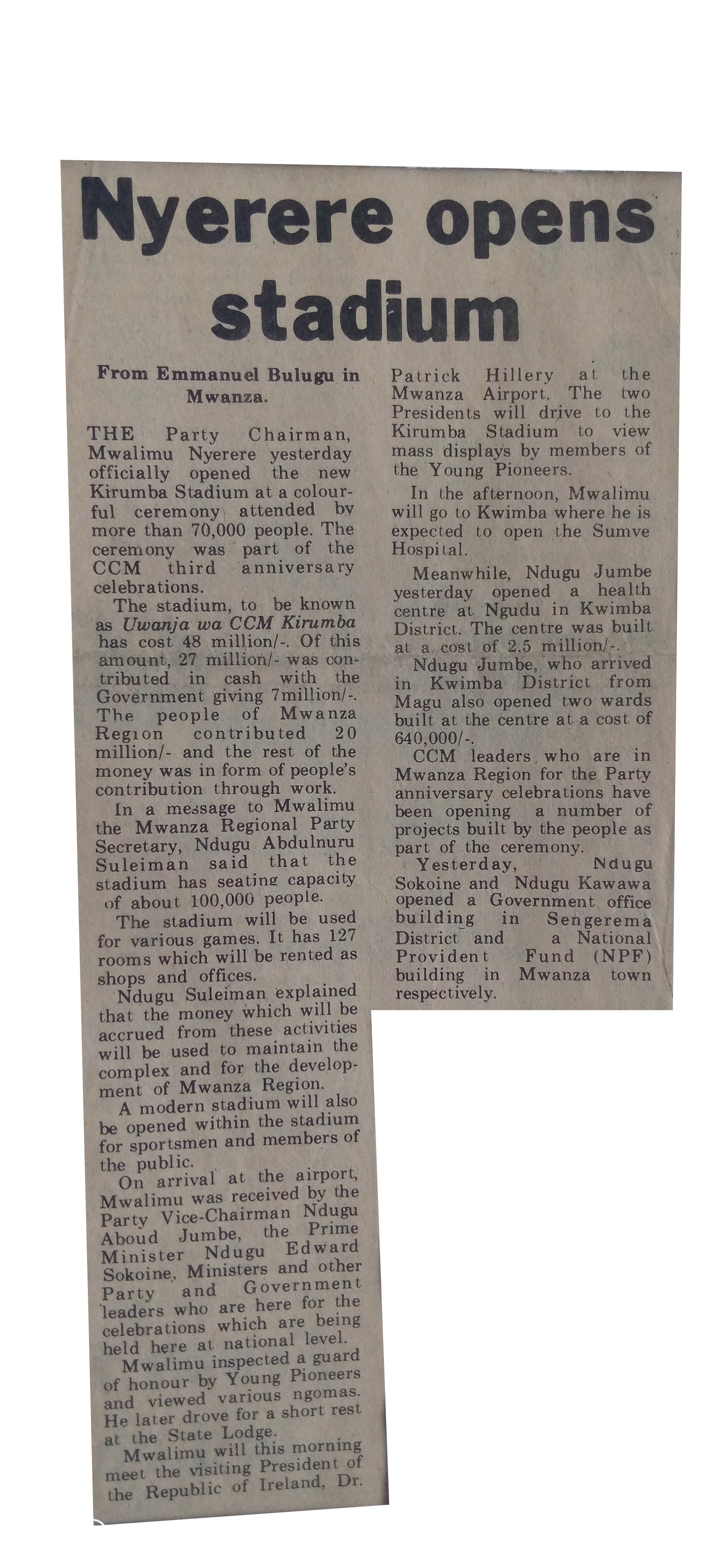 Nyerere opens stadium (1980,February 4) Daily News.pp.1