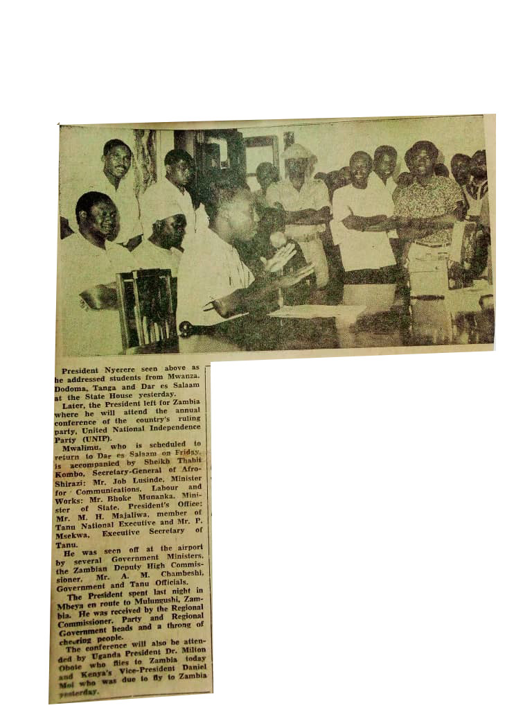 President Nyerere seen above as he addressed students from Mwanza, Dodoma, Tanga and Dare es Salaam at the state house.