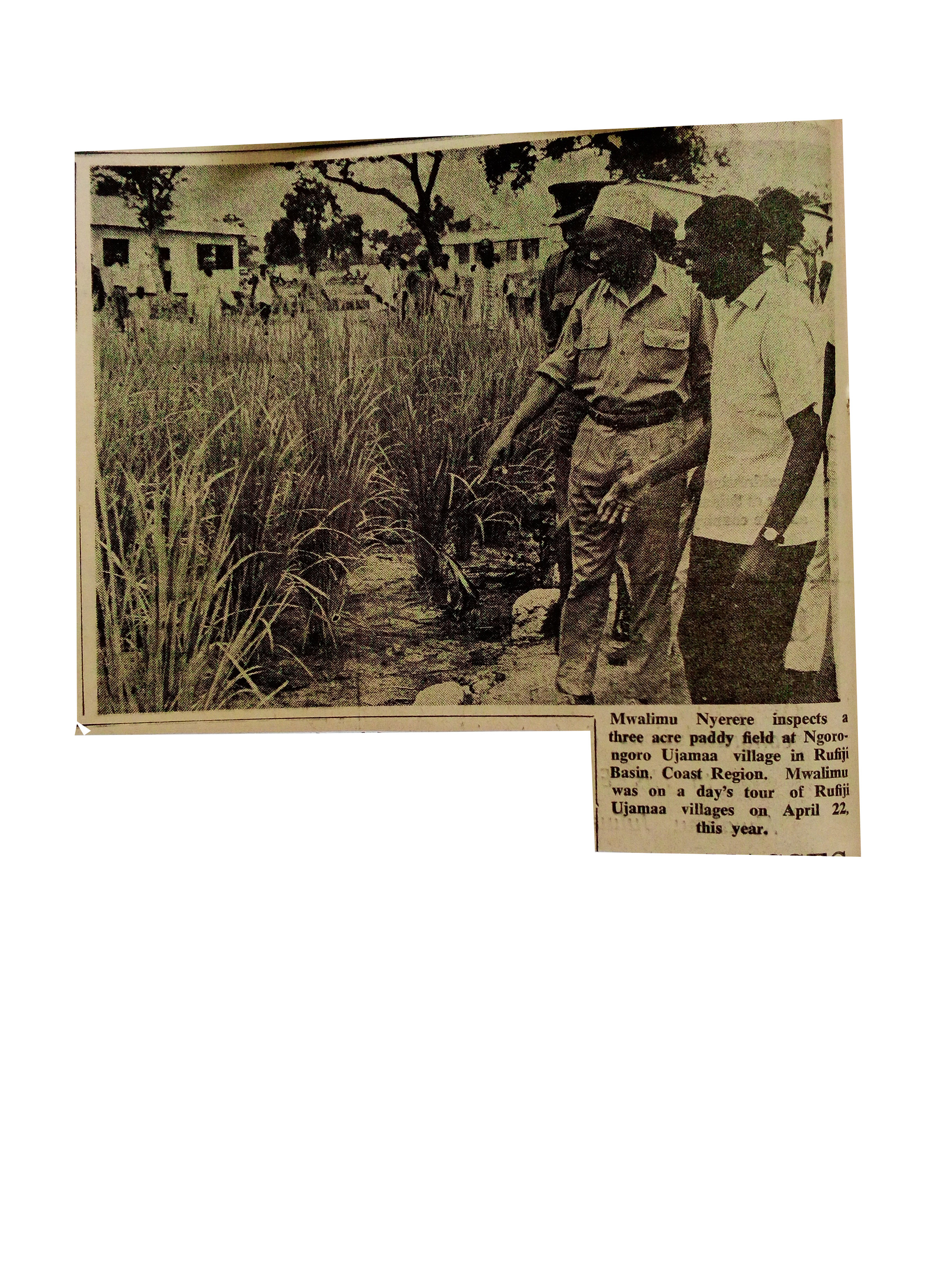 Mwalimu Nyerere inspect a three acre paddy field at Ngorongoro ujamaa villege