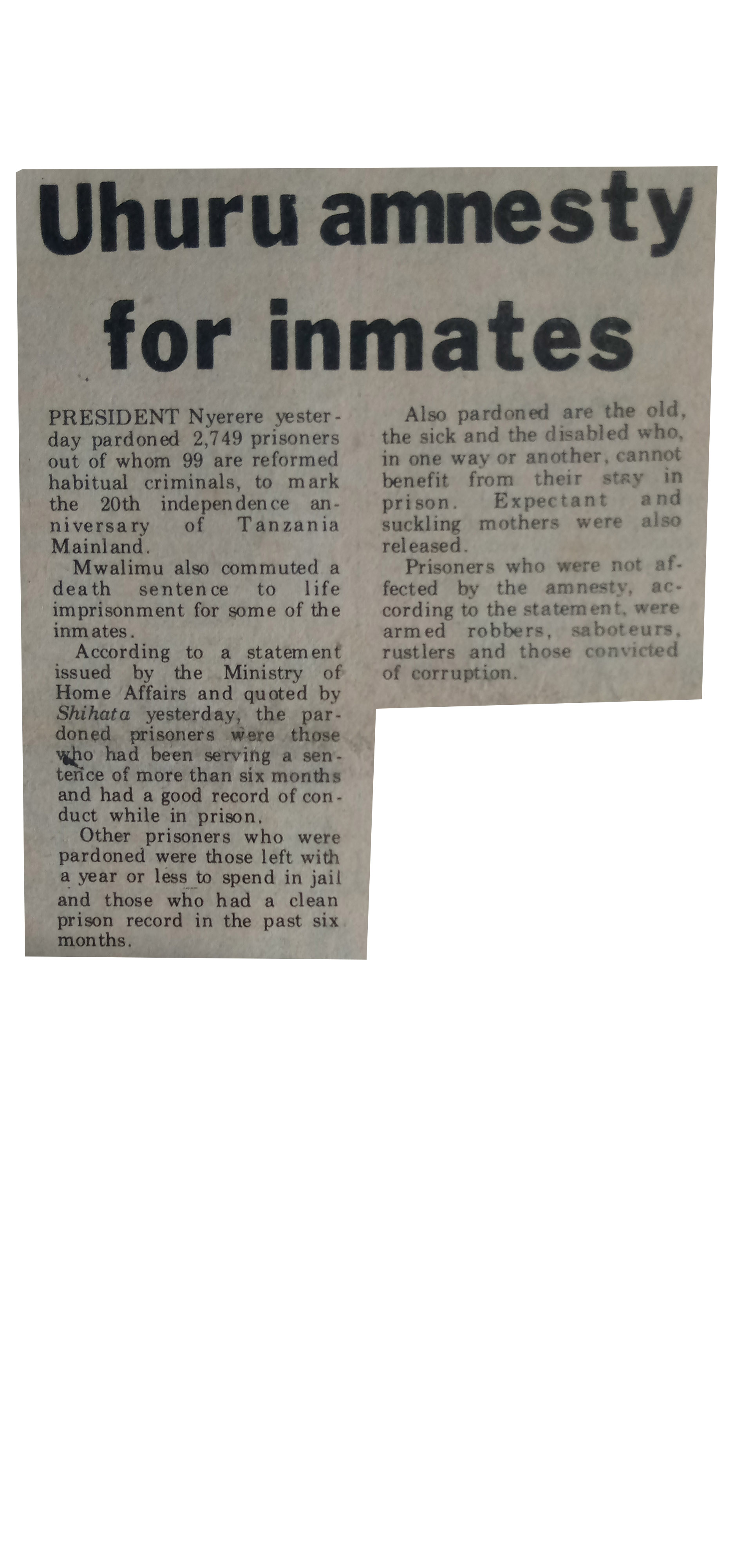Uhuru amnesty for inmates (1981,December 10) Daily News.pp.1