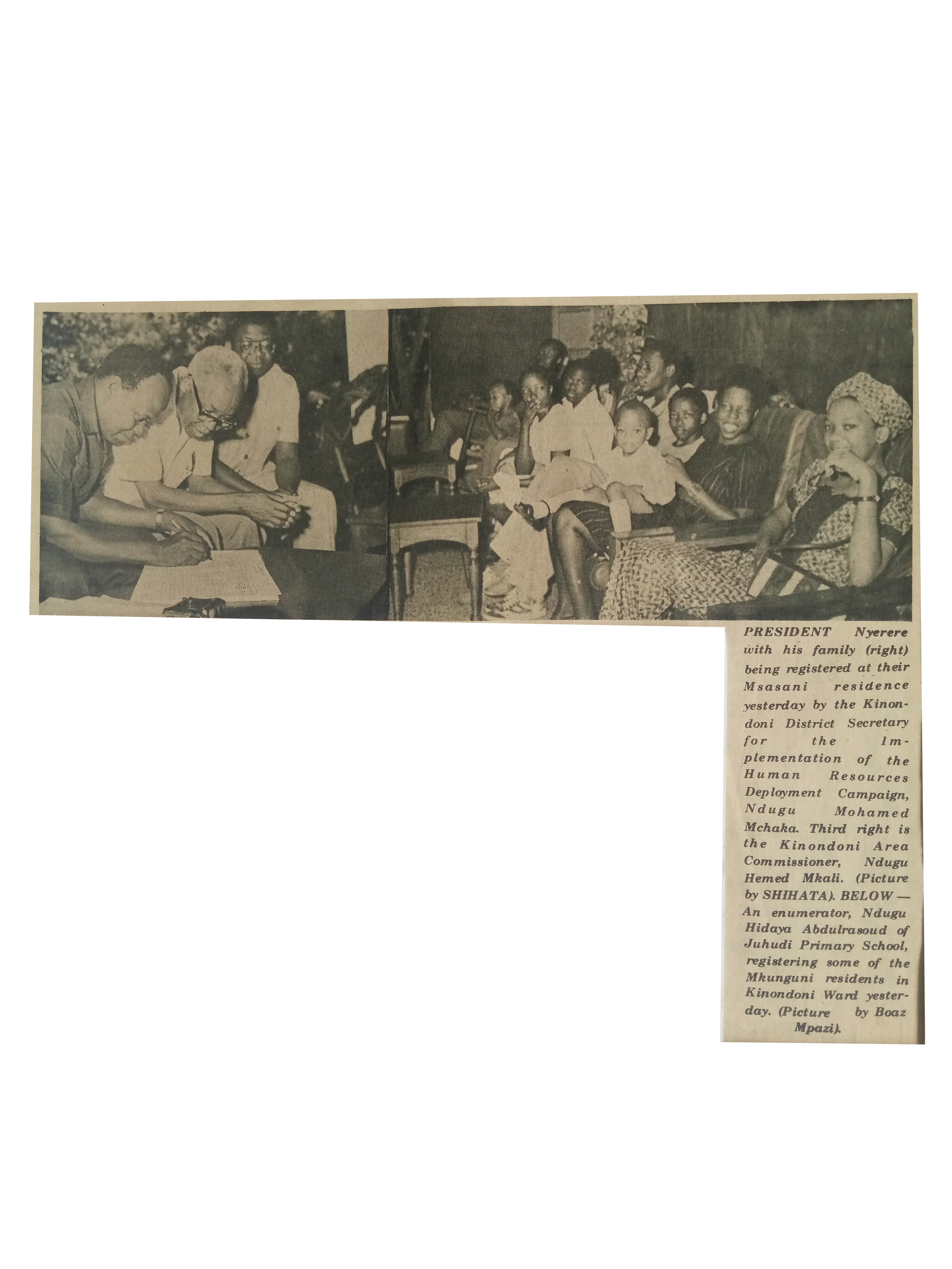President Nyerere with his family being registered (1984,December 3) Daily News.pp.1