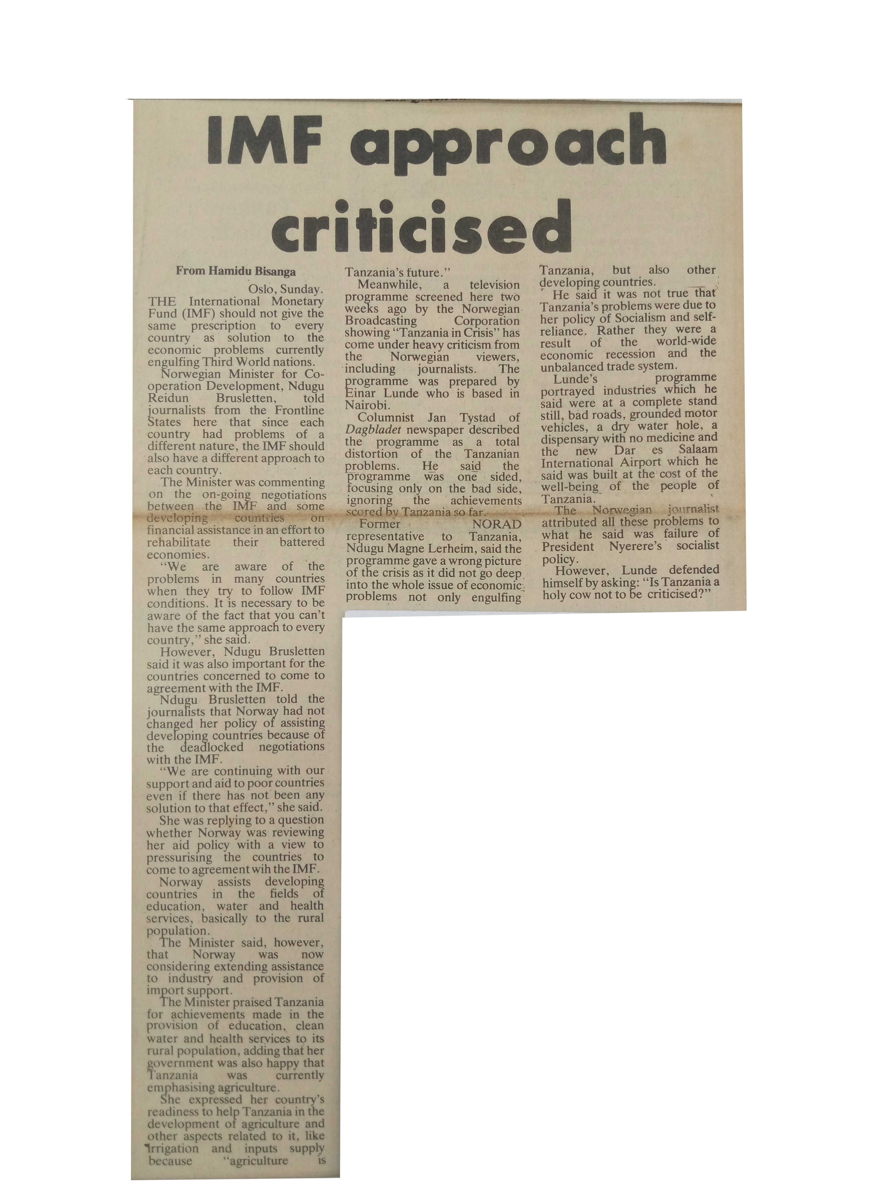 IMF approach criticised(1985,May 27).Daily News,pp.1
