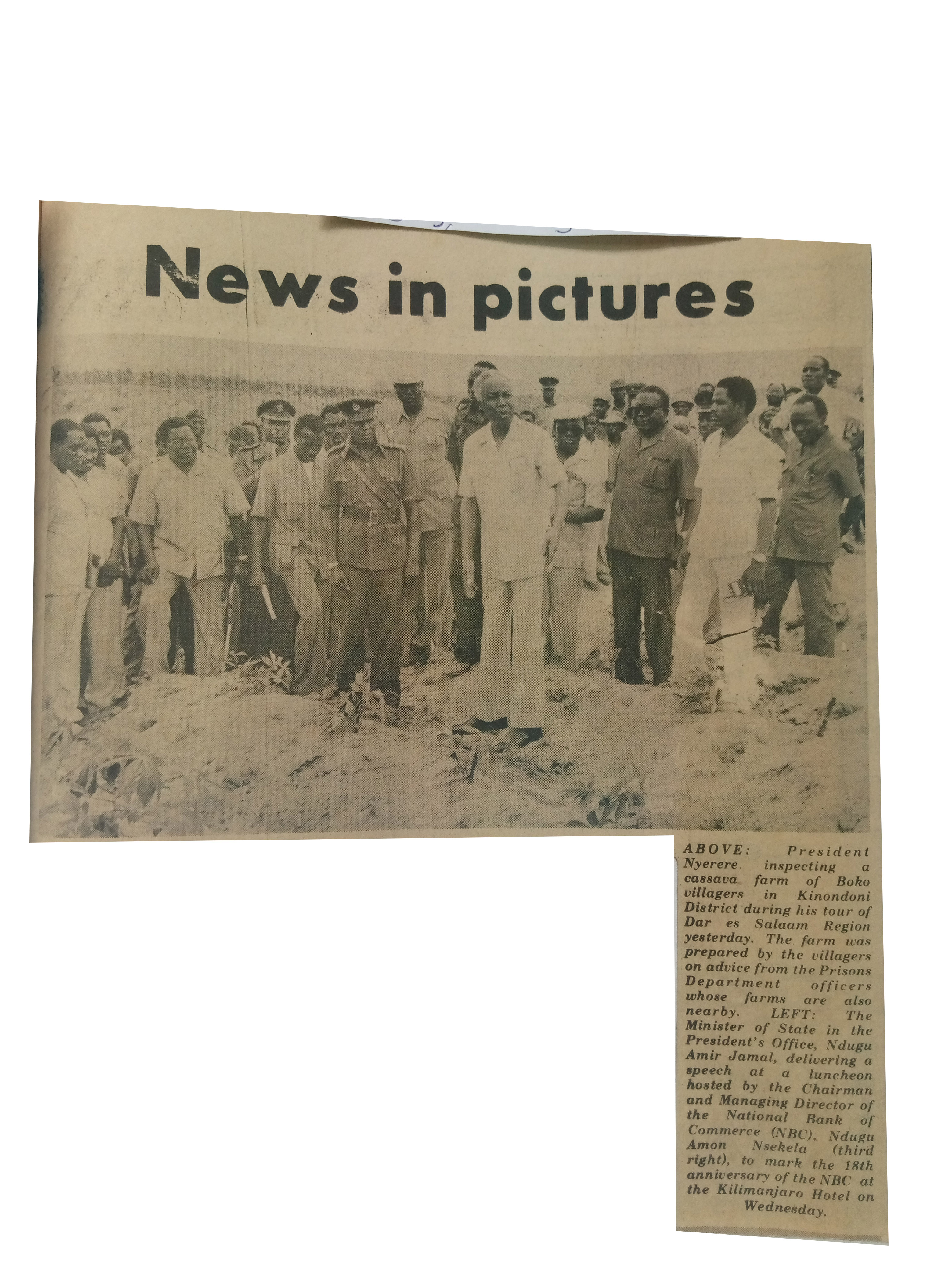 President Nyerere inspecting a cassava farm of Boko (1985,February 9) Daily News.pp.5