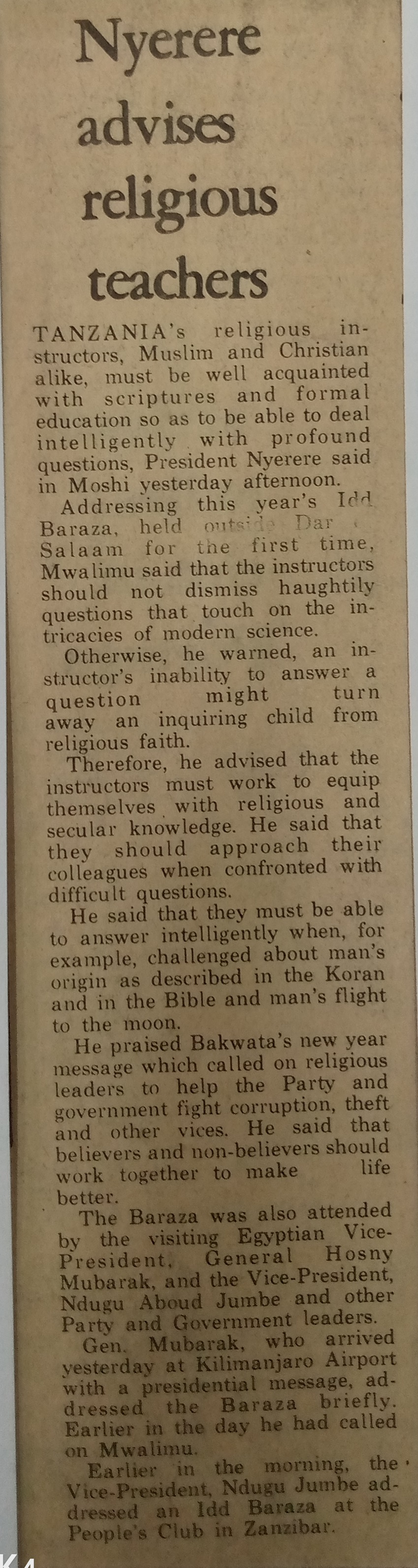 Nyerere advises religious teachers (1977,September 16) Daily News.pp.1