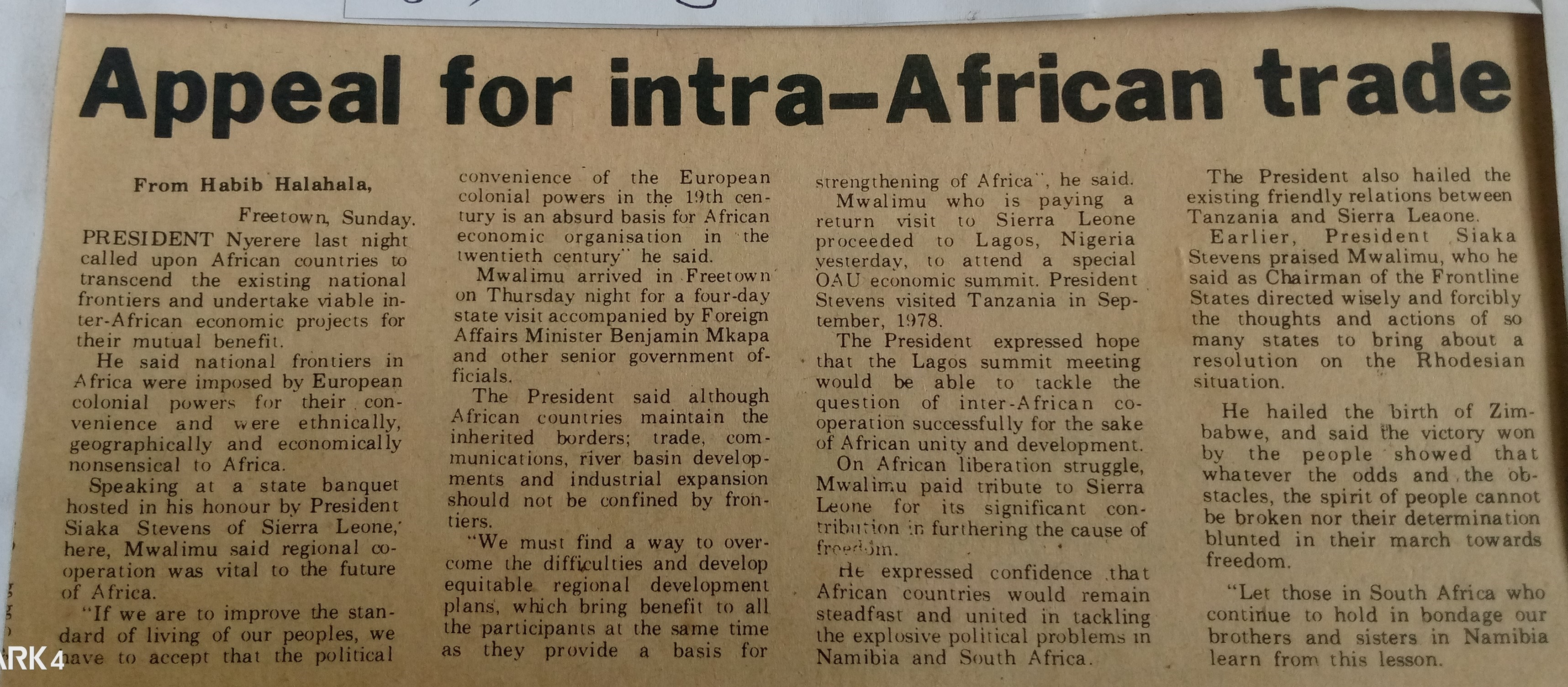 Appeal for intra-African trade (1980,August 28) Daily News.pp.1