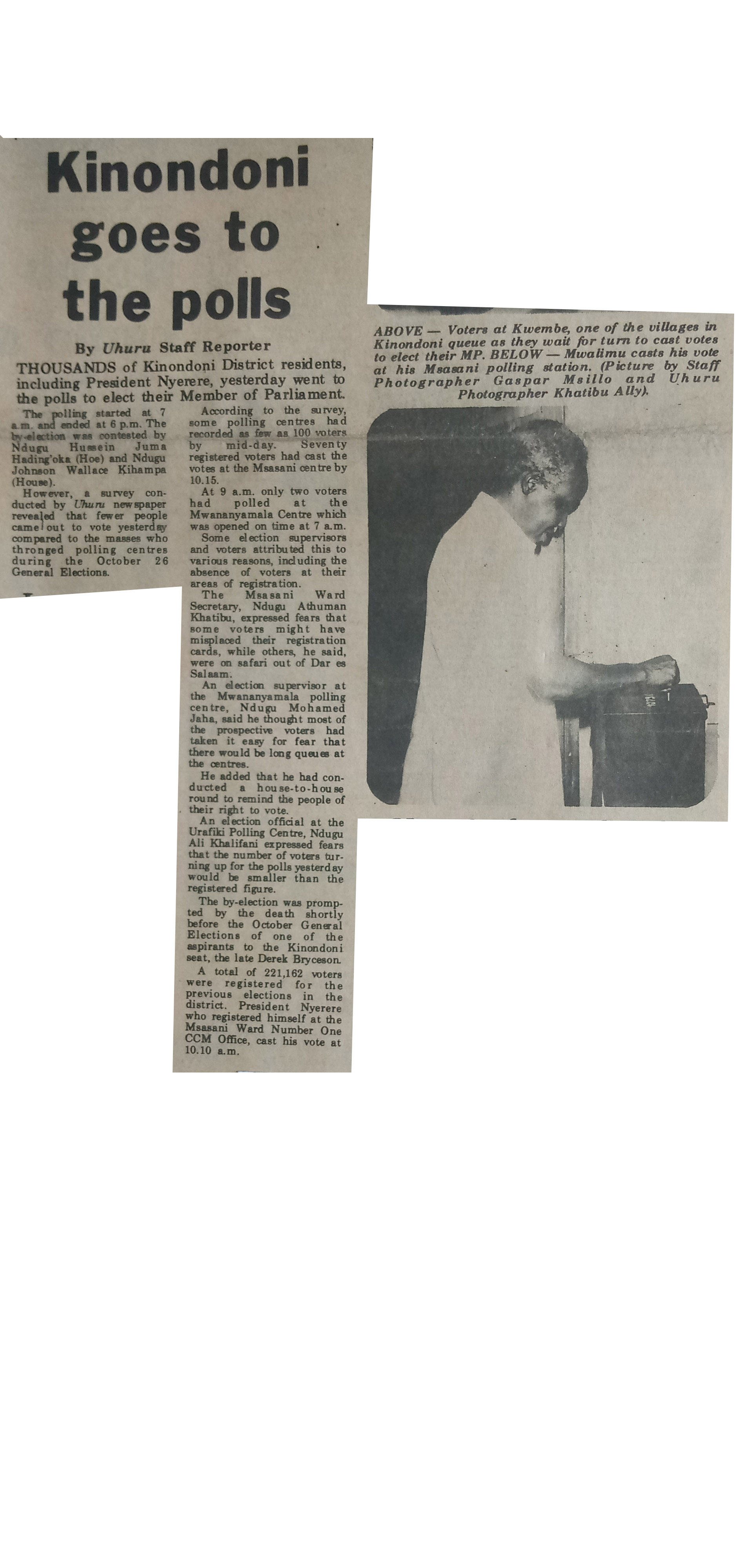 Kinondoni goes to the polls (1981,January 24) Daily News.pp.1