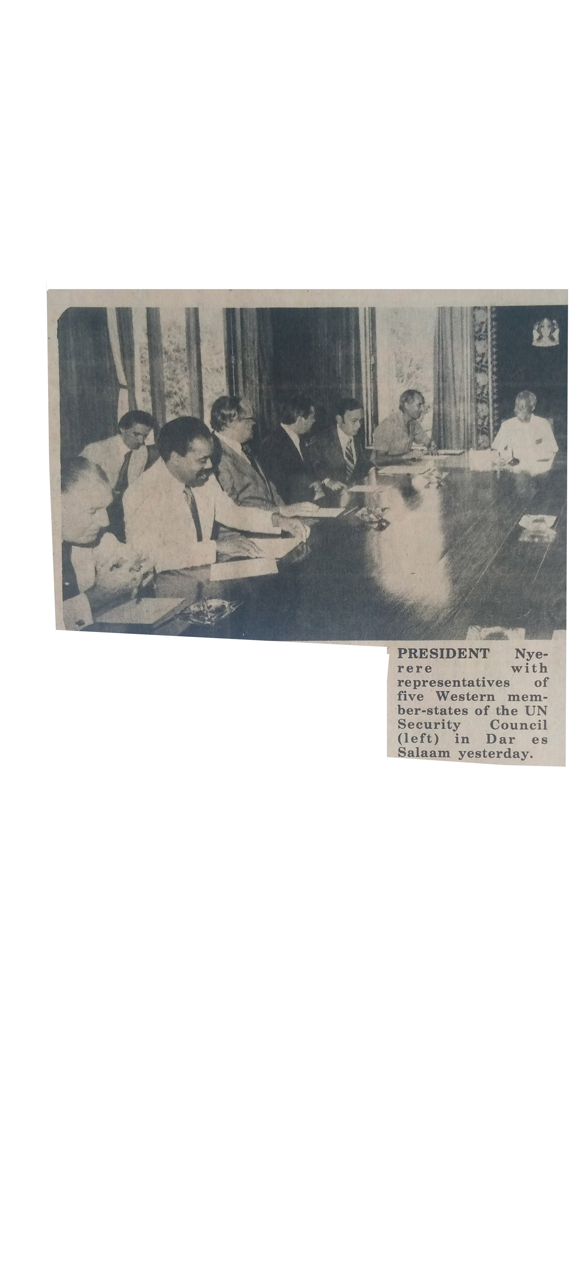 Nyerere, J.K (1977 December 30). President Nyerere with representative of UN Security Council in Dar es Salaam, pp.5
