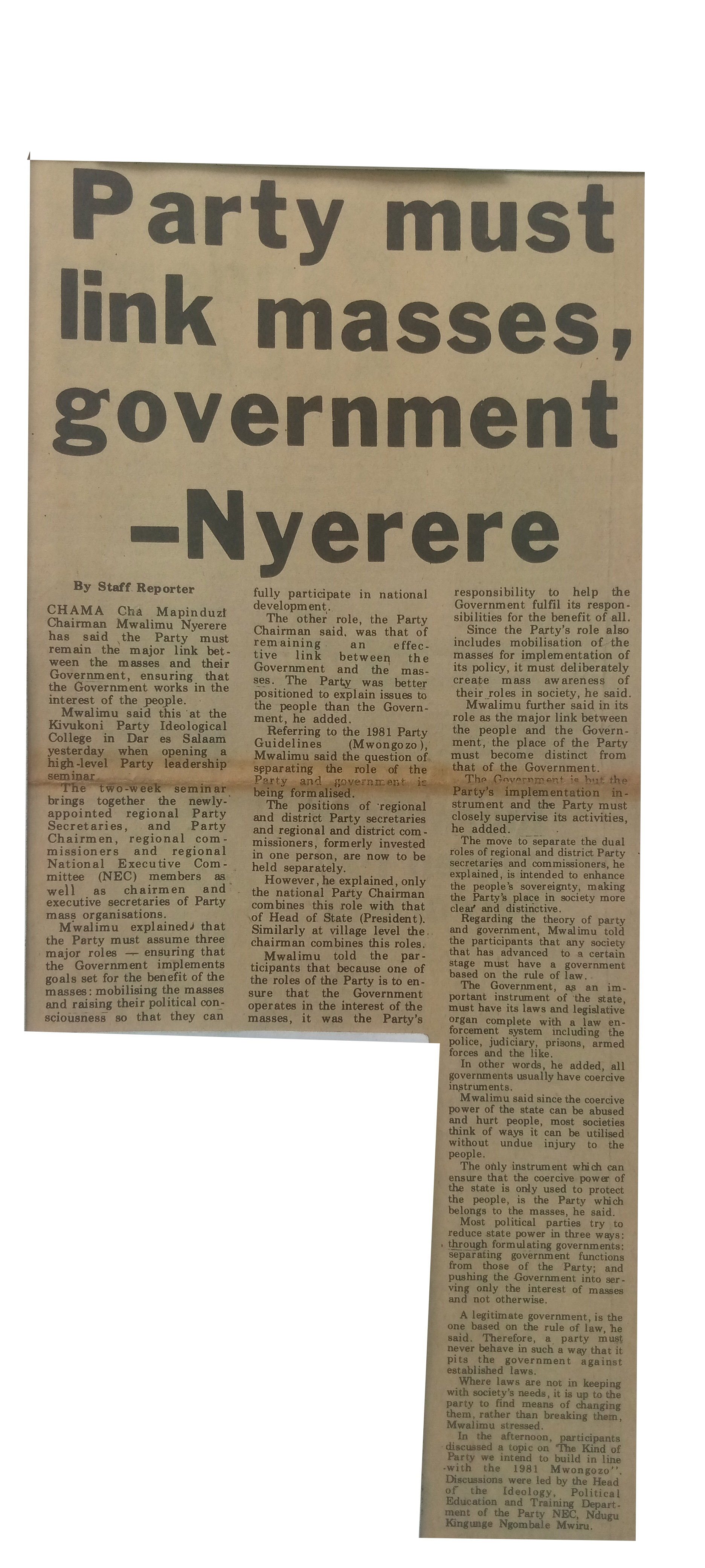 Party must link masses government -Nyerere (1983,February 2) Daily News.pp.1